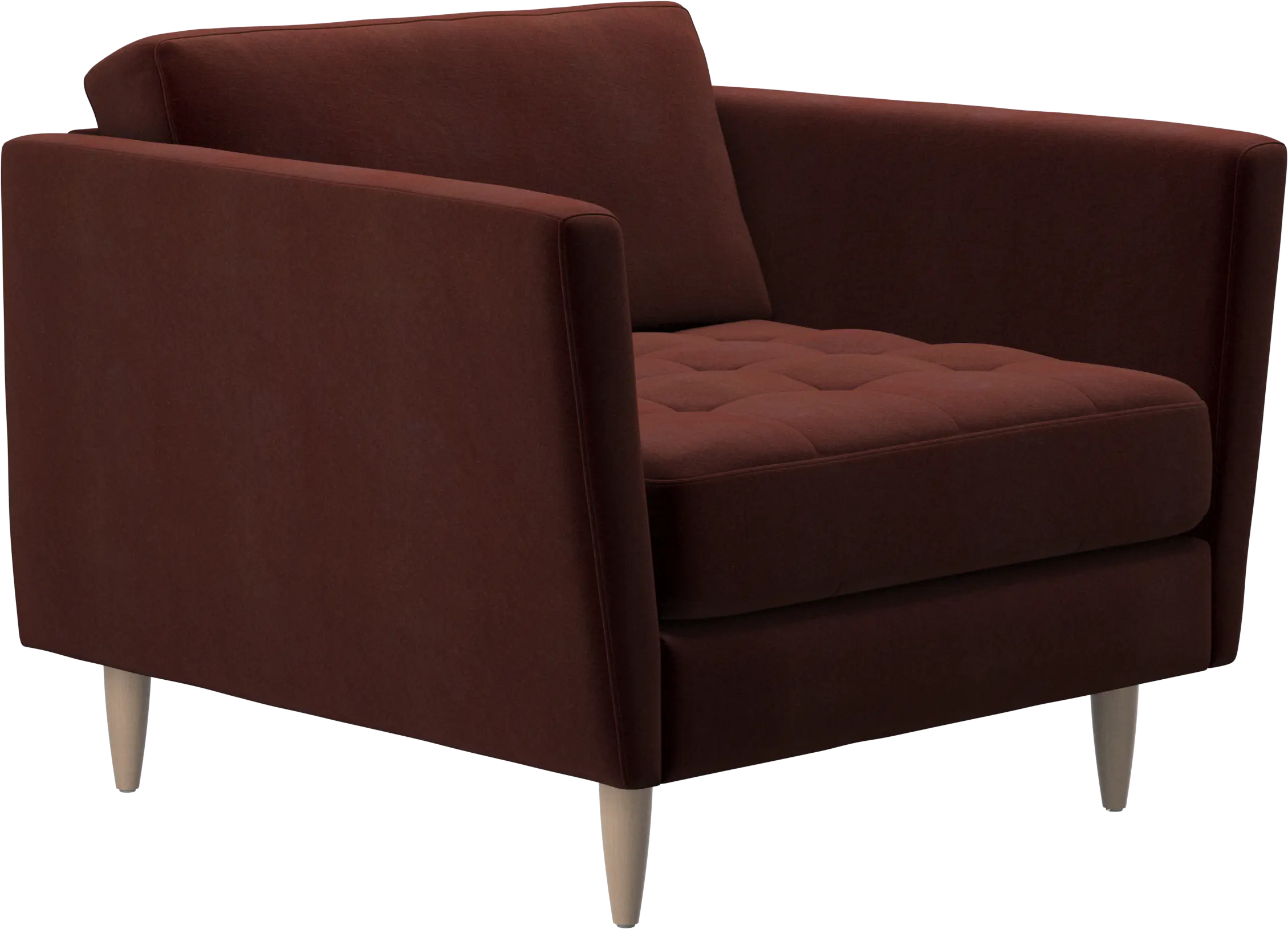With a feminine touch and a nod to 60s design, the Osaka armchair is all about style. The light design and slim proportions make this armchair perfect for small homes or as part of a style coordinated living room set with the Osaka sofa. The beautiful tufted seat adds visual softness and brings a classic look to your living room. Inclined armrests give the armchair a modern, unique look and an open feel. Slim wooden legs complete the retro look.
