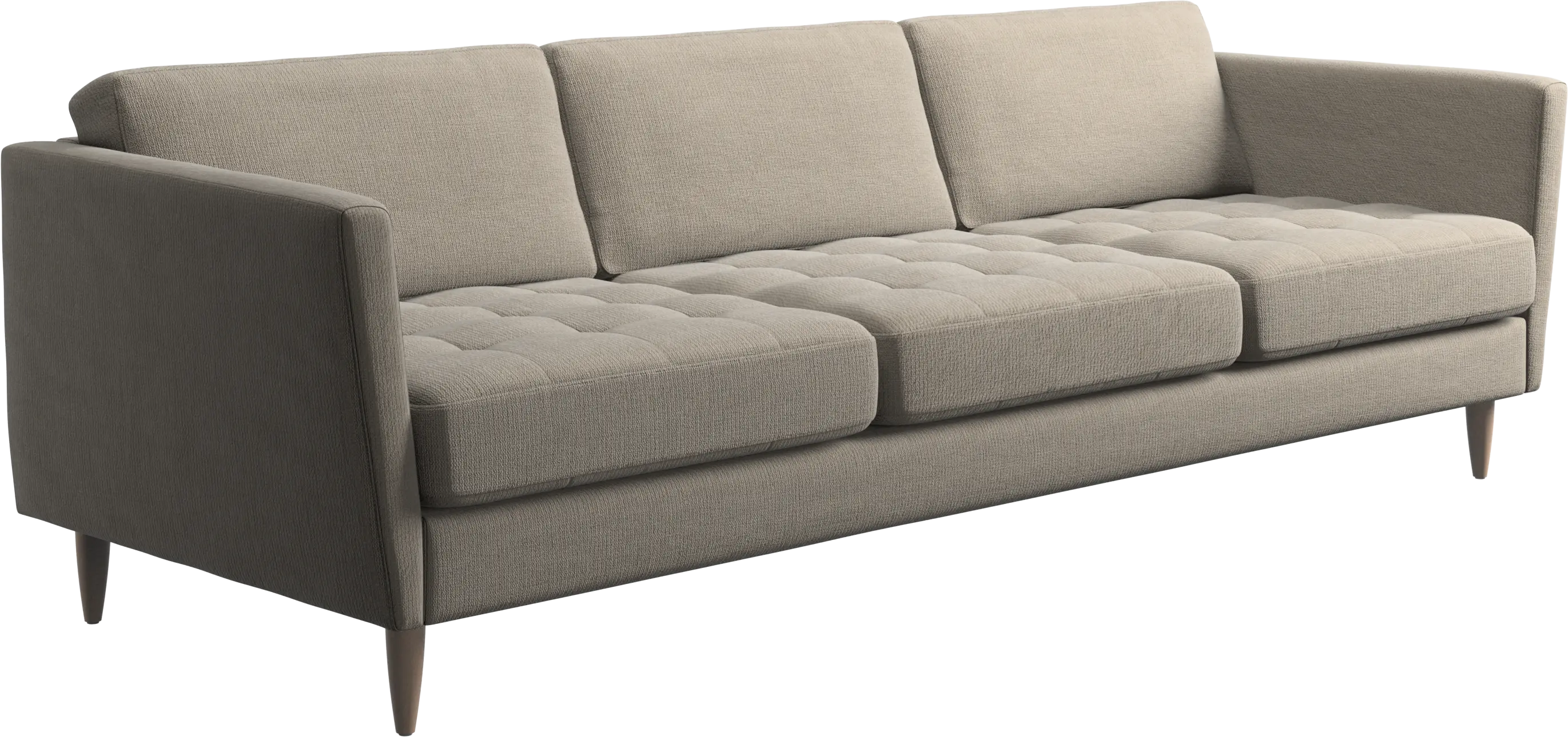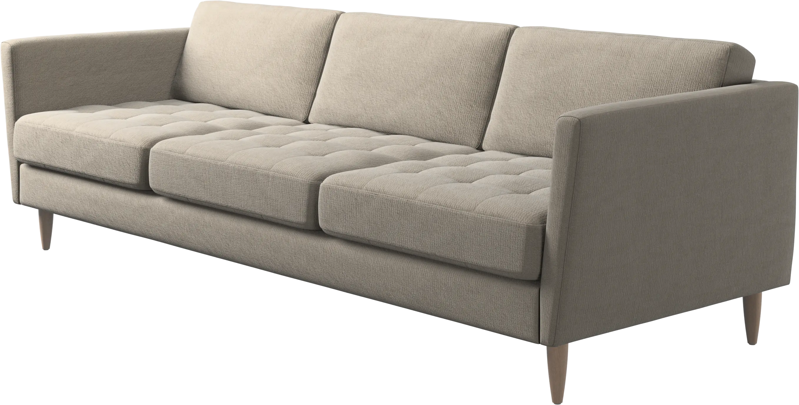 A light look and slim proportions make the Osaka sofa perfect for small homes, while a subtle feminine look and a touch of 60s design ensure that the Osaka sofa still packs a style punch. The beautiful tufted seats add visual softness and bring a classic look to your living room. Inclined armrests give the sofa a modern, unique look and open it up to the rest of the room. Cosy up with your family or claim the sofa all to yourself with this roomy 3 seater sofa.