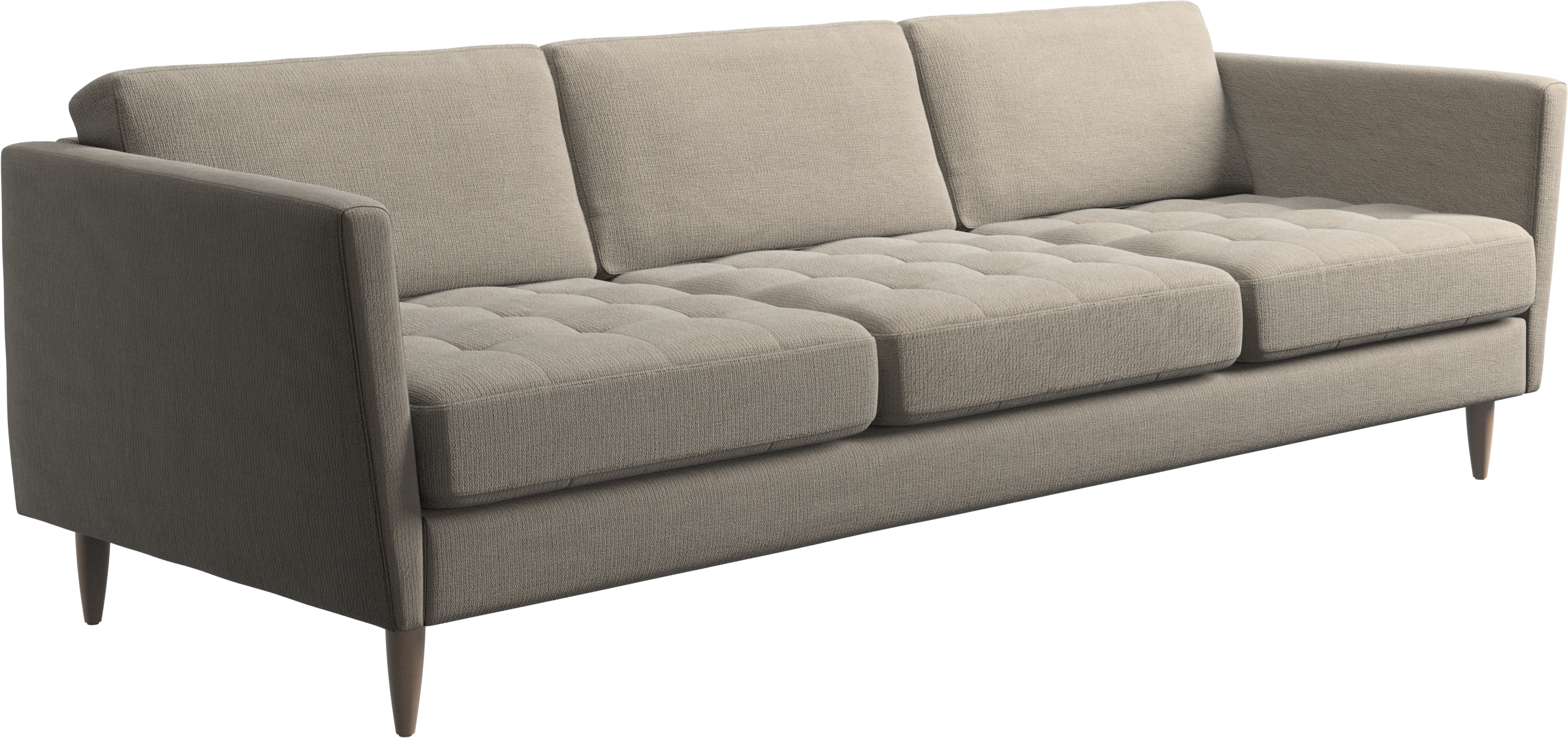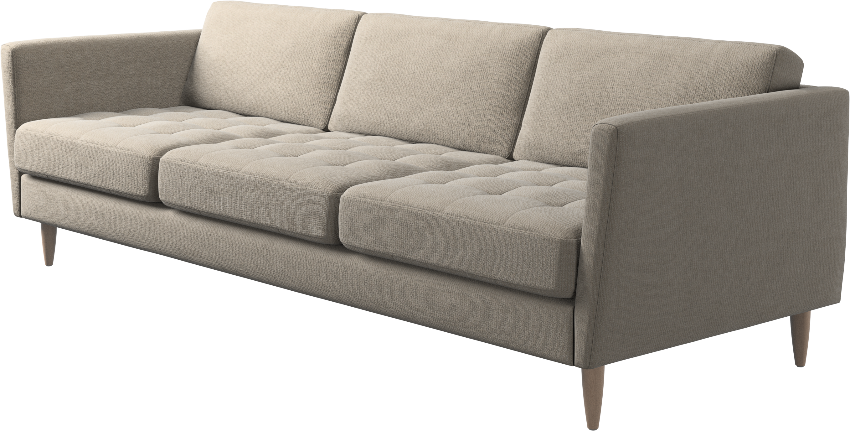 A light look and slim proportions make the Osaka sofa perfect for small homes, while a subtle feminine look and a touch of 60s design ensure that the Osaka sofa still packs a style punch. The beautiful tufted seats add visual softness and bring a classic look to your living room. Inclined armrests give the sofa a modern, unique look and open it up to the rest of the room. Cosy up with your family or claim the sofa all to yourself with this roomy 3 seater sofa.