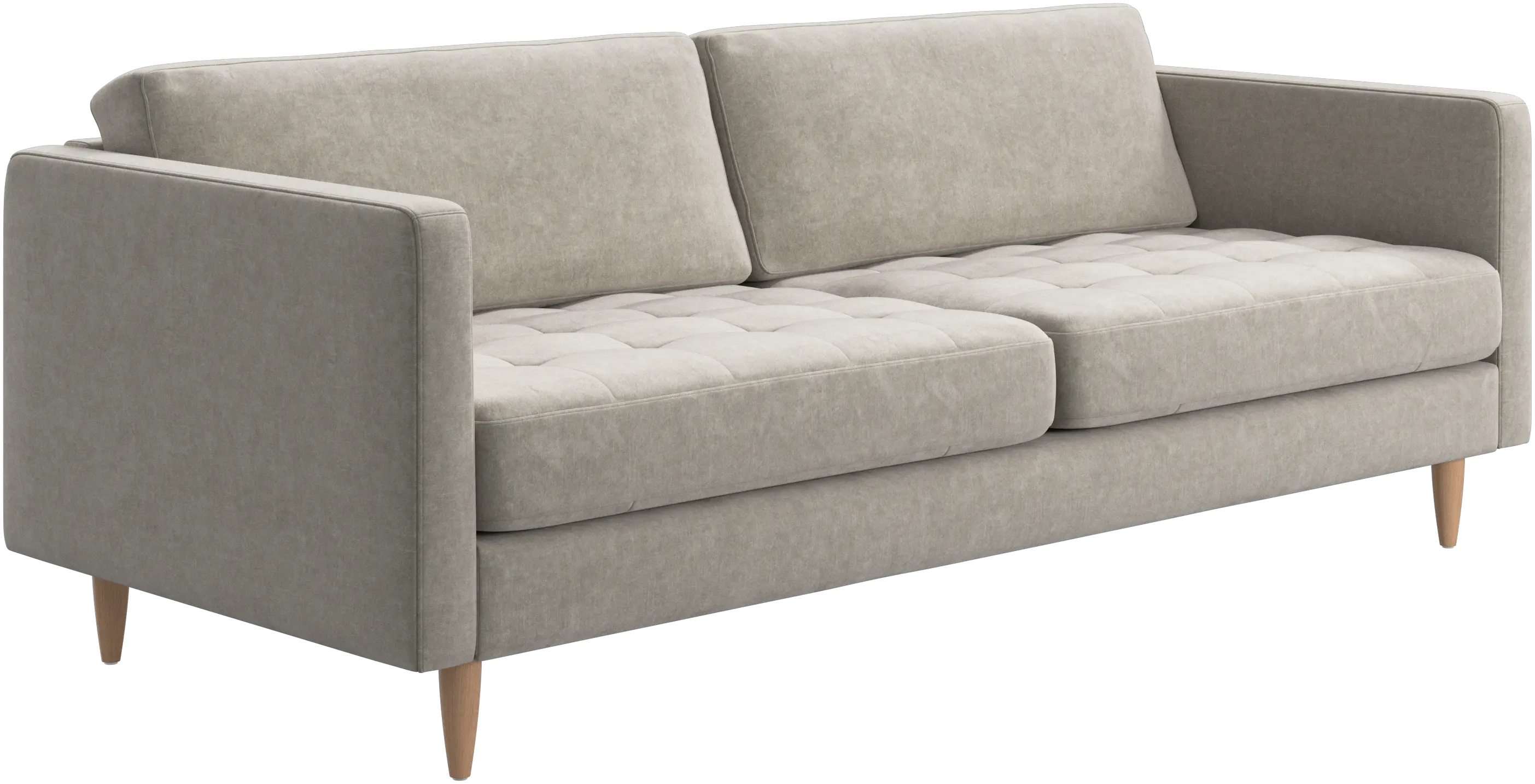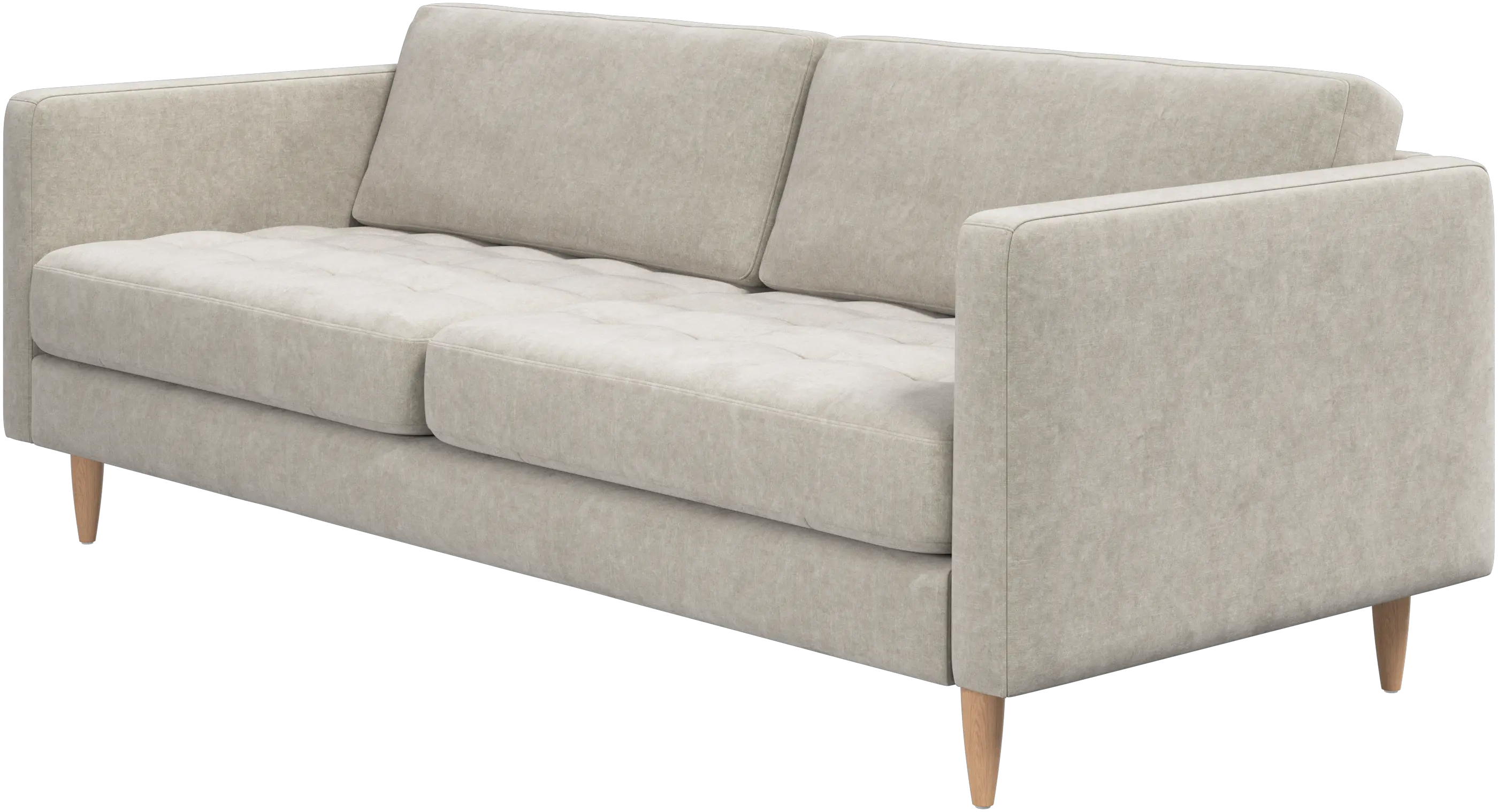 A light look and slim proportions make the Osaka sofa perfect for small homes, while a subtle feminine look and a touch of 60s design ensure that the Osaka sofa still packs a style punch. The beautiful tufted seats add visual softness and bring a classic look to your living room. The classic, straight armrests emphasise the clean lines and Scandinavian look. While keeping the 2 seater look, this comfortable 2.5 seater sofa has wider seats for extra comfort.