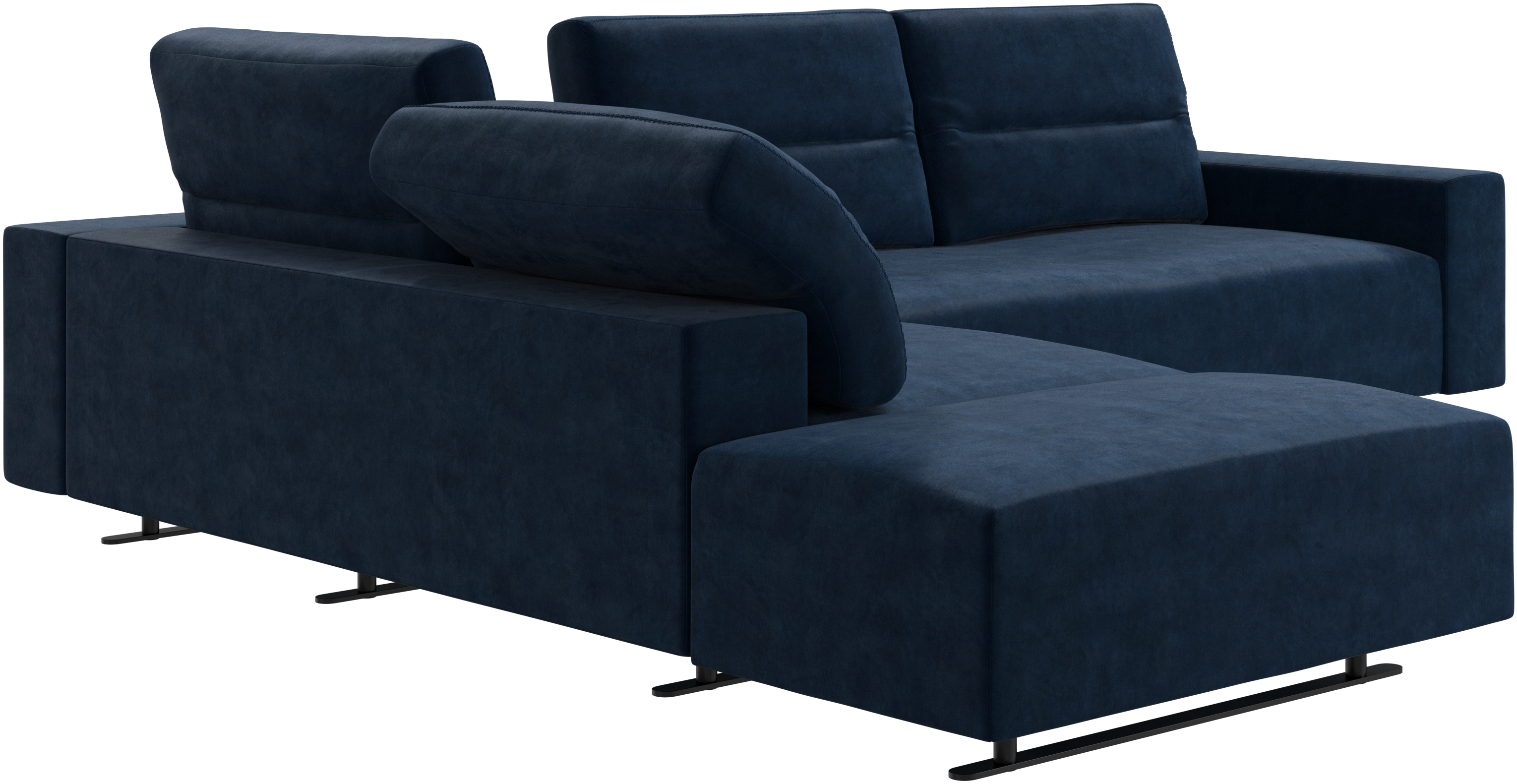 The total depth of the seat is 107 cm meaning wide enough to sleep on. To ensure optimal support despite this deep seating area, a lumbar cushion and a scatter cushion are available in coordinated fabrics and leathers.