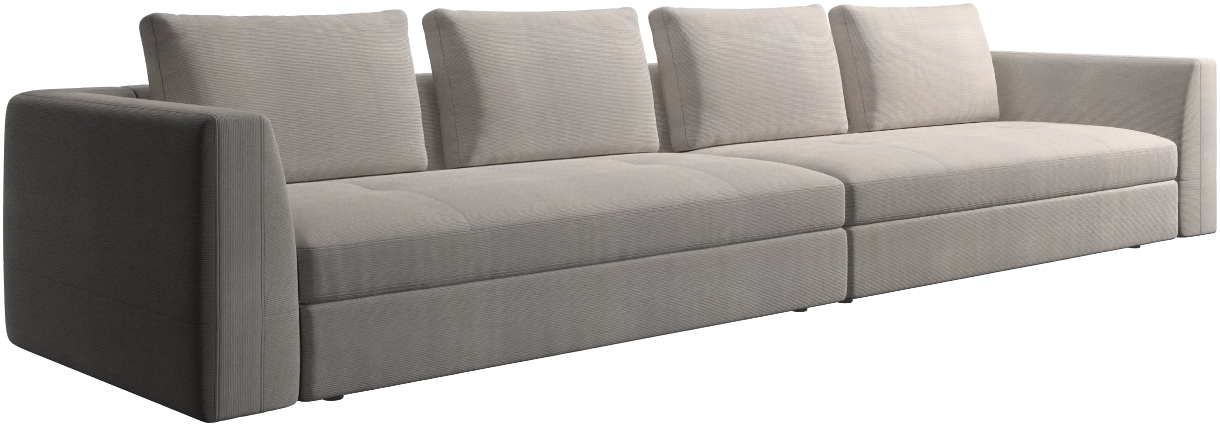 The Bergamo sofa is crafted with low, discrete legs that create a light, 'floating’ look.