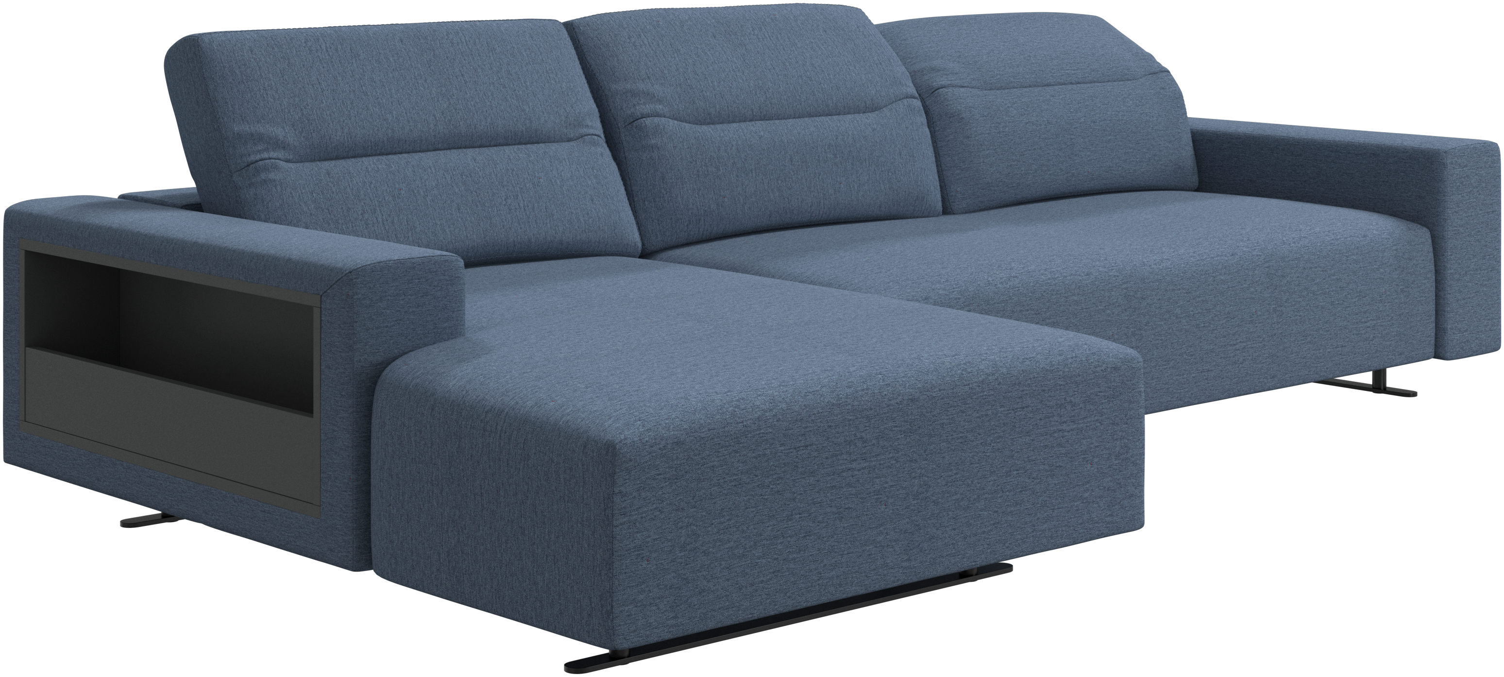 We know. It’s beautiful. But the modern Hampton sofa is much more than just good looks. A low base, a stunning loft look, adjustable backrests for comfort and visual impact – the Hampton sofa is the perfect personal retreat. Put your feet up, stretch out or use it as an extra seat – you won’t be sorry for choosing this comfortable chaise longue sofa. And with clever built-in storage in the armrest, you will always have your living room essentials at hand.