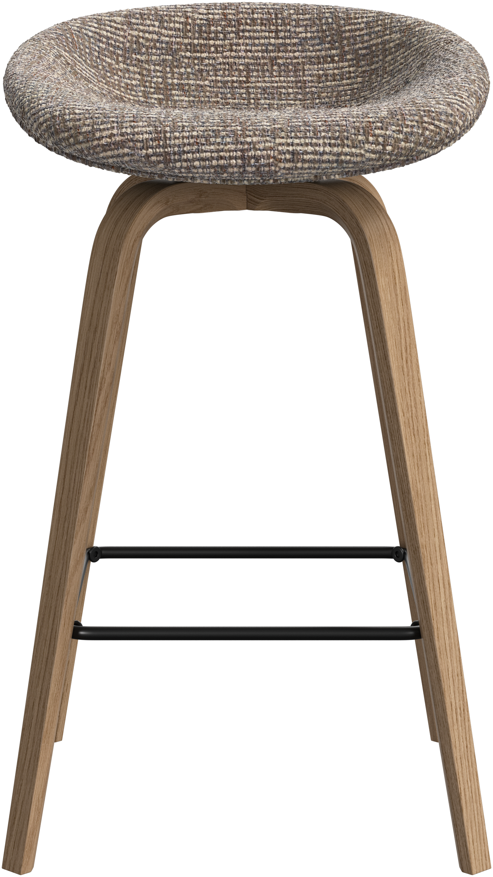 With a soft, organic form, the Hauge bar stool is your stylish solution for elevated seating. It has a fixed height to fit your home bar or open kitchen space and a metal footrest for contemporary comfort.