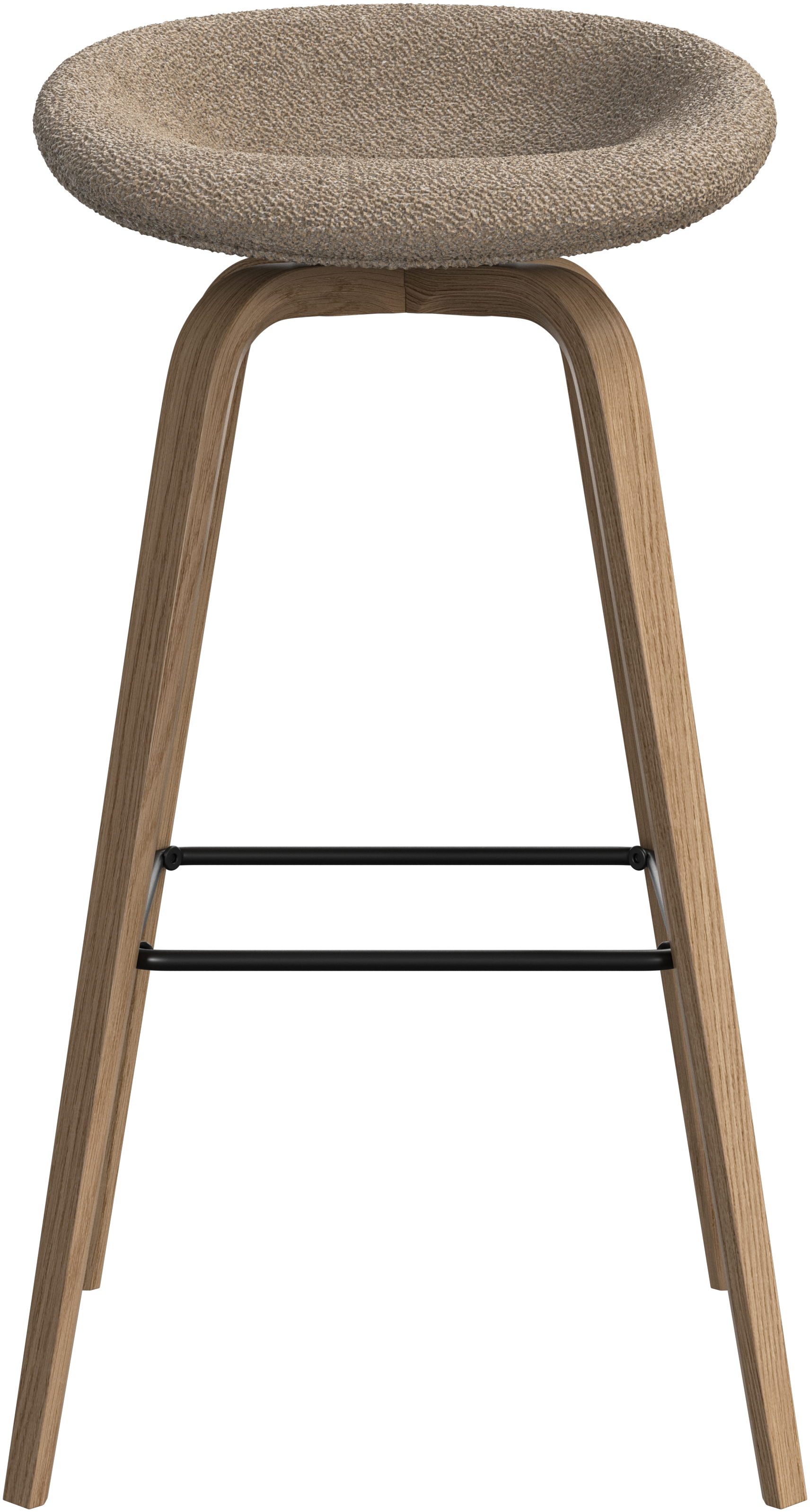 With a soft, organic form, the Hauge bar stool is your stylish solution for elevated seating. It has a fixed height to fit your home bar or open kitchen space and a metal footrest for contemporary comfort.