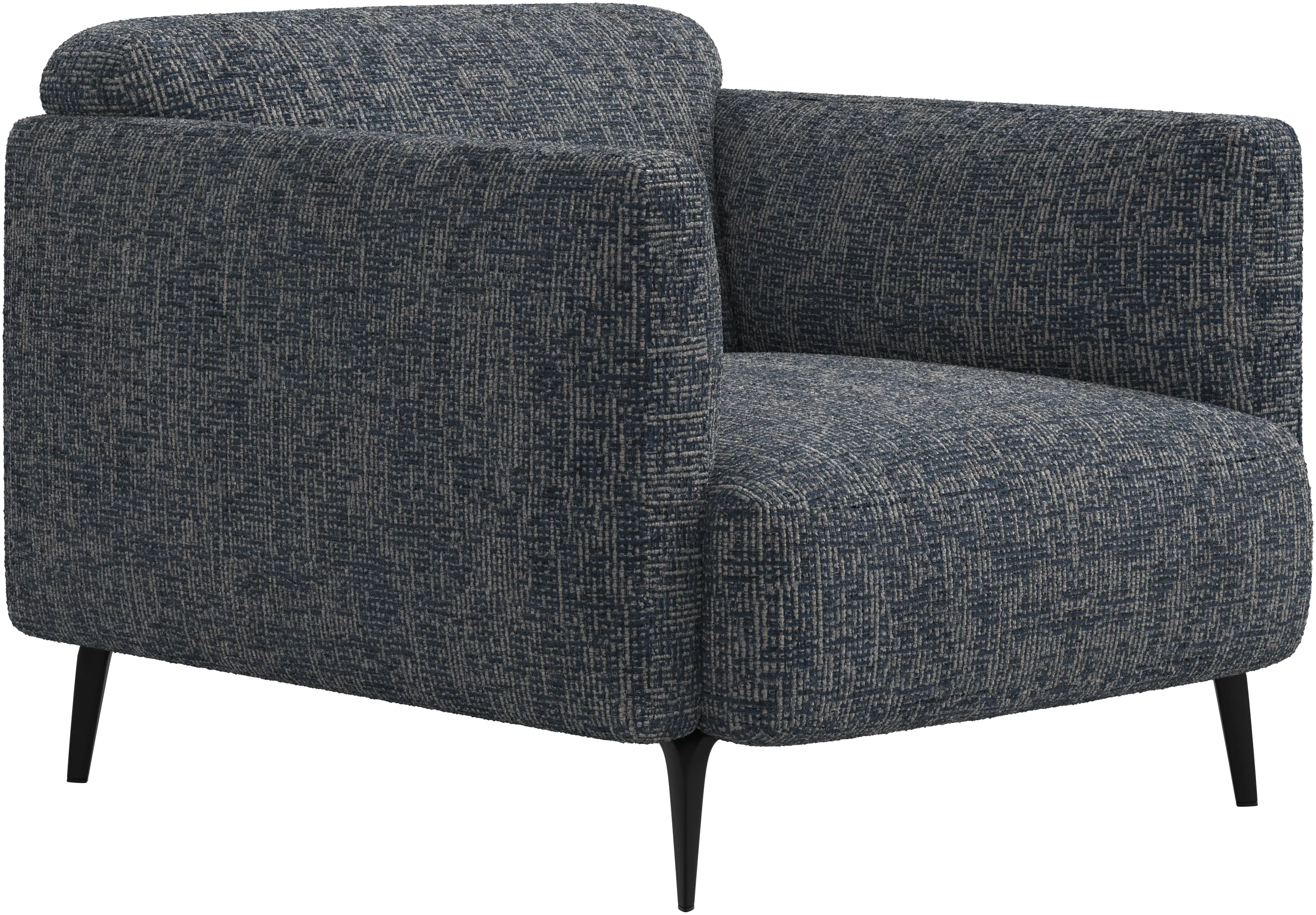 Soft upholstered armrests and rounded edges, gives a lounge feeling underlined by the low back.