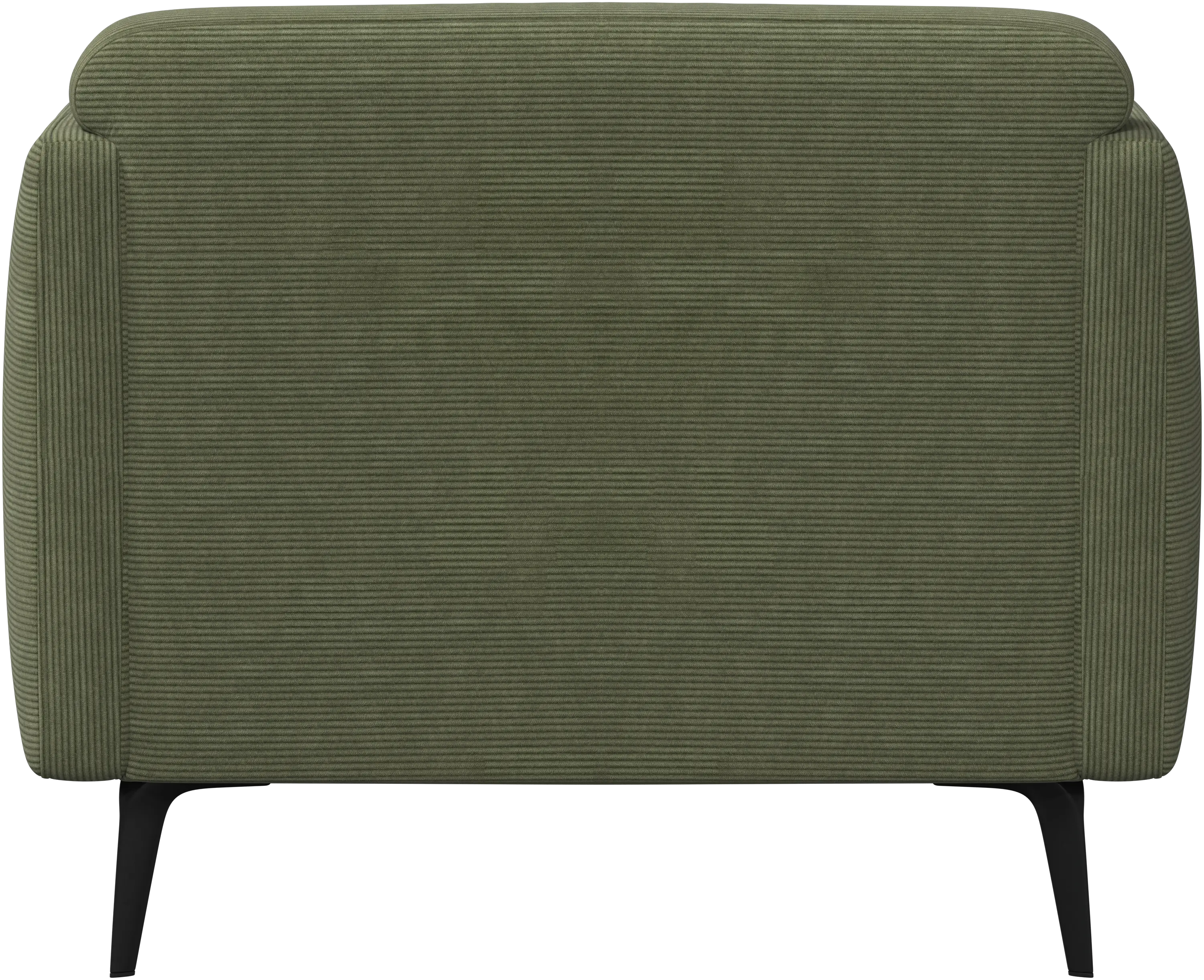 Soft upholstered armrests and rounded edges, gives a lounge feeling underlined by the low back.