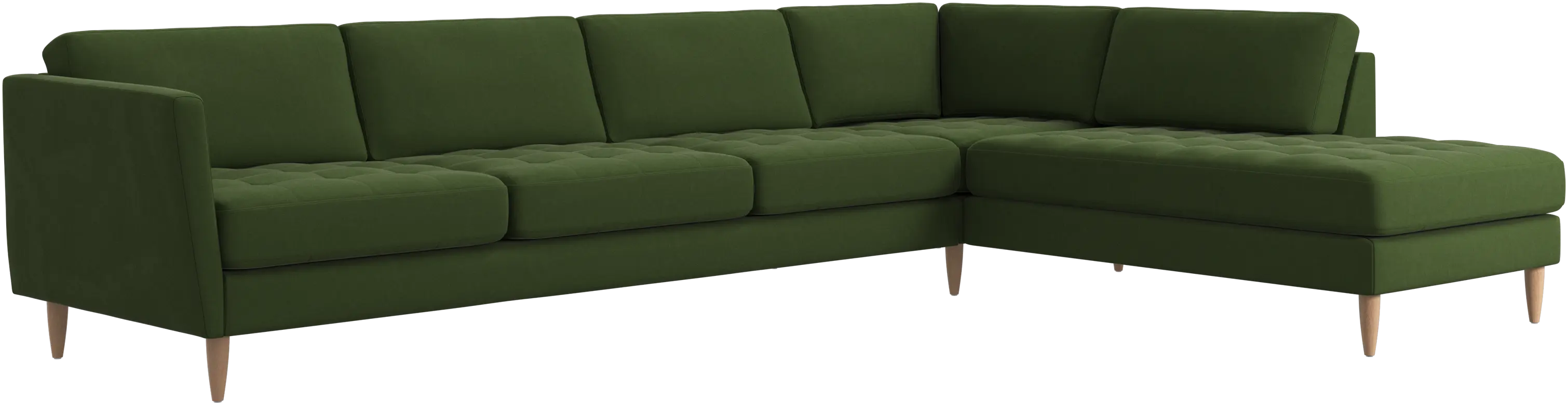 A light look and slim proportions make the Osaka sofa perfect for small homes, while a subtle feminine look and a touch of 60s design ensure that the Osaka sofa still packs a style punch. The beautiful tufted seats add visual softness and bring a classic look to your living room. Inclined armrests give the sofa a modern, unique look and open it up to the rest of the room. With plenty of room for the entire family this corner sofa will be the hero of your living room. The open end will create a dynamic, welcoming atmosphere - a true blessing for the integrated areas of open-plan living. Put your feet up, stretch out or use it as an extra seat – you won’t be sorry for choosing this comfortable chaise longue sofa.
