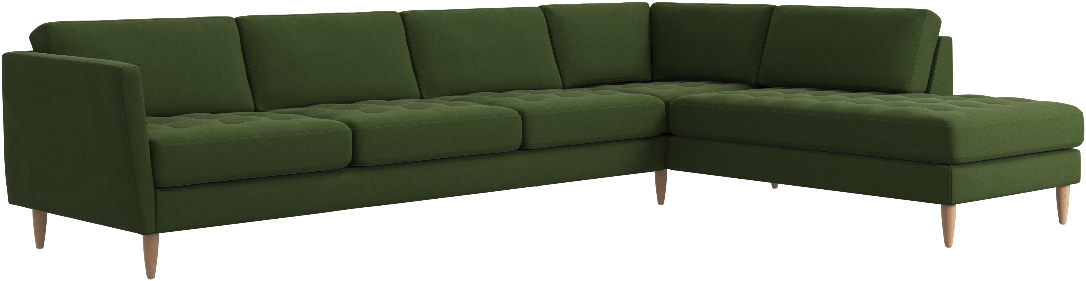 A light look and slim proportions make the Osaka sofa perfect for small homes, while a subtle feminine look and a touch of 60s design ensure that the Osaka sofa still packs a style punch. The beautiful tufted seats add visual softness and bring a classic look to your living room. Inclined armrests give the sofa a modern, unique look and open it up to the rest of the room. With plenty of room for the entire family this corner sofa will be the hero of your living room. The open end will create a dynamic, welcoming atmosphere - a true blessing for the integrated areas of open-plan living. Put your feet up, stretch out or use it as an extra seat – you won’t be sorry for choosing this comfortable chaise longue sofa.