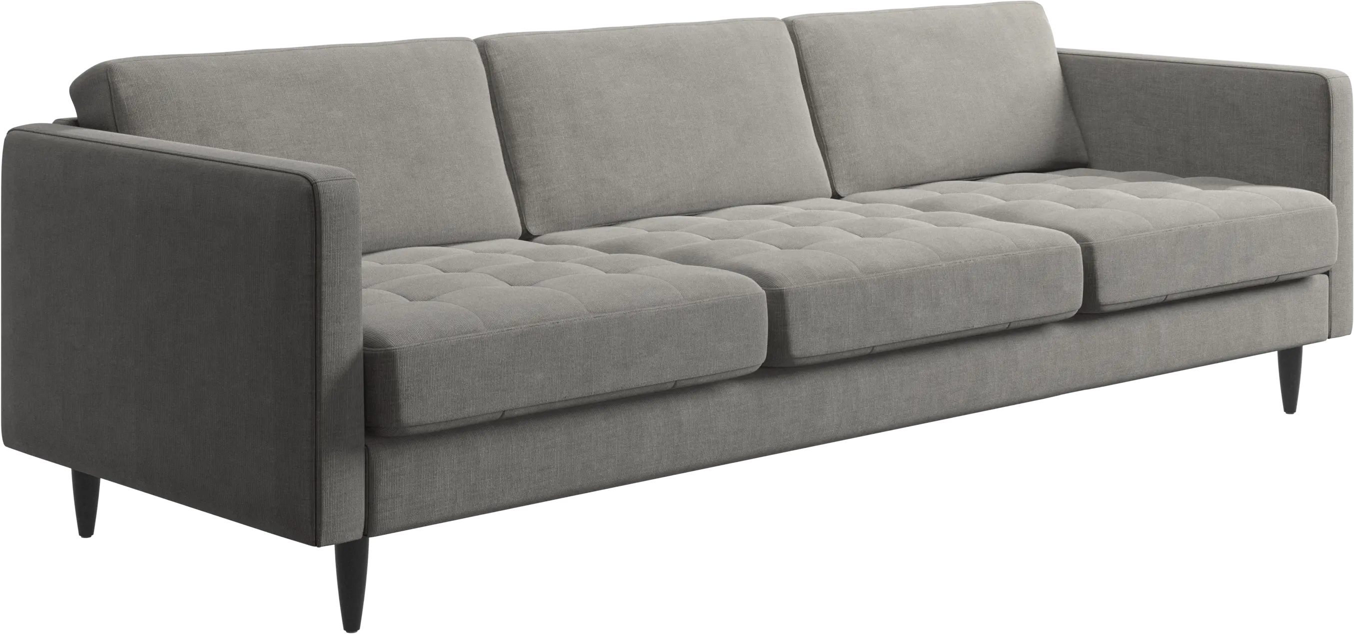 A light look and slim proportions make the Osaka sofa perfect for small homes, while a subtle feminine look and a touch of 60s design ensure that the Osaka sofa still packs a style punch. The beautiful tufted seats add visual softness and bring a classic look to your living room. The classic, straight armrests emphasise the clean lines and Scandinavian look. Cosy up with your family or claim the sofa all to yourself with this roomy 3 seater sofa.
