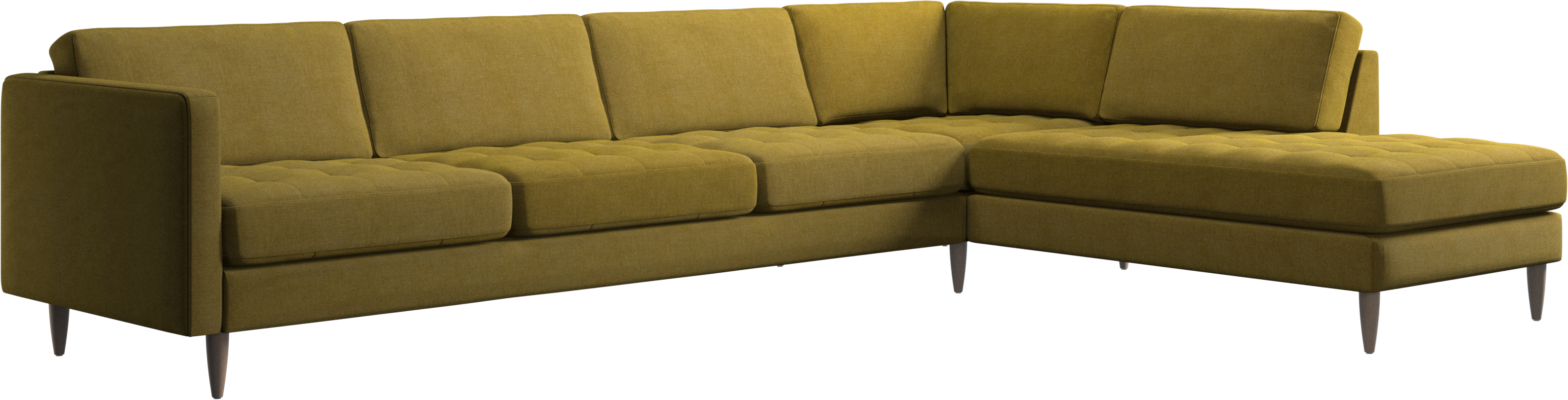 A light look and slim proportions make the Osaka sofa perfect for small homes, while a subtle feminine look and a touch of 60s design ensure that the Osaka sofa still packs a style punch. The beautiful tufted seats add visual softness and bring a classic look to your living room. The classic, straight armrests emphasise the clean lines and Scandinavian look. With plenty of room for the entire family this corner sofa will be the hero of your living room. The open end will create a dynamic, welcoming atmosphere - a true blessing for the integrated areas of open-plan living. Put your feet up, stretch out or use it as an extra seat – you won’t be sorry for choosing this comfortable chaise longue sofa.