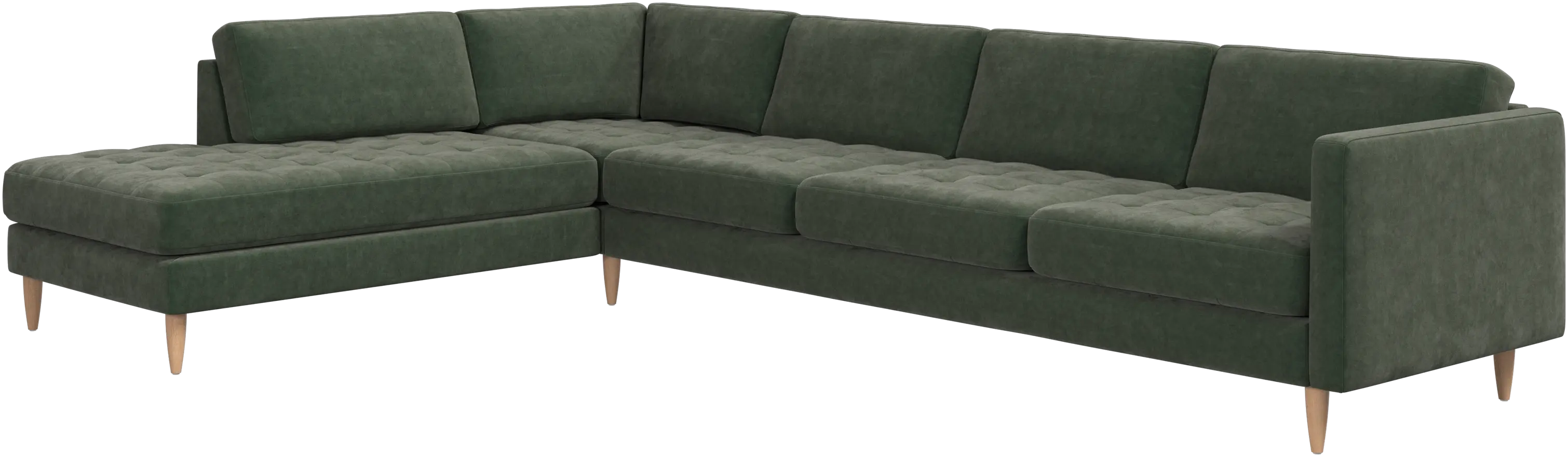 A light look and slim proportions make the Osaka sofa perfect for small homes, while a subtle feminine look and a touch of 60s design ensure that the Osaka sofa still packs a style punch. The beautiful tufted seats add visual softness and bring a classic look to your living room. The classic, straight armrests emphasise the clean lines and Scandinavian look. With plenty of room for the entire family this corner sofa will be the hero of your living room. The open end will create a dynamic, welcoming atmosphere - a true blessing for the integrated areas of open-plan living. Put your feet up, stretch out or use it as an extra seat – you won’t be sorry for choosing this comfortable chaise longue sofa.