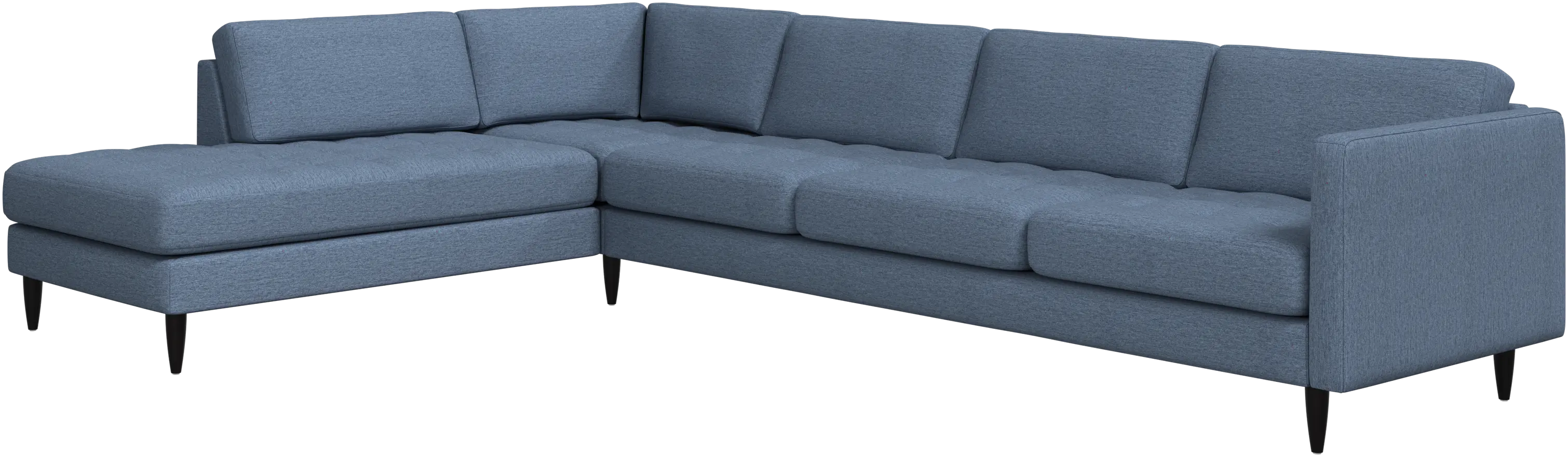 A light look and slim proportions make the Osaka sofa perfect for small homes, while a subtle feminine look and a touch of 60s design ensure that the Osaka sofa still packs a style punch. The beautiful tufted seats add visual softness and bring a classic look to your living room. The classic, straight armrests emphasise the clean lines and Scandinavian look. With plenty of room for the entire family this corner sofa will be the hero of your living room. The open end will create a dynamic, welcoming atmosphere - a true blessing for the integrated areas of open-plan living. Put your feet up, stretch out or use it as an extra seat – you won’t be sorry for choosing this comfortable chaise longue sofa.