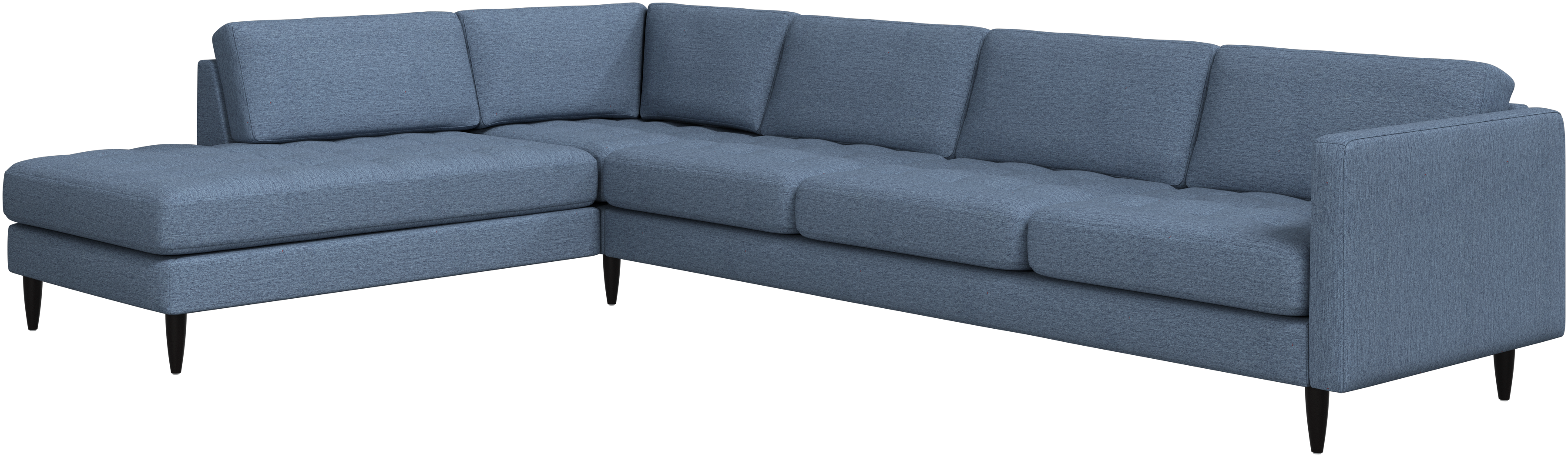 A light look and slim proportions make the Osaka sofa perfect for small homes, while a subtle feminine look and a touch of 60s design ensure that the Osaka sofa still packs a style punch. The beautiful tufted seats add visual softness and bring a classic look to your living room. The classic, straight armrests emphasise the clean lines and Scandinavian look. With plenty of room for the entire family this corner sofa will be the hero of your living room. The open end will create a dynamic, welcoming atmosphere - a true blessing for the integrated areas of open-plan living. Put your feet up, stretch out or use it as an extra seat – you won’t be sorry for choosing this comfortable chaise longue sofa.