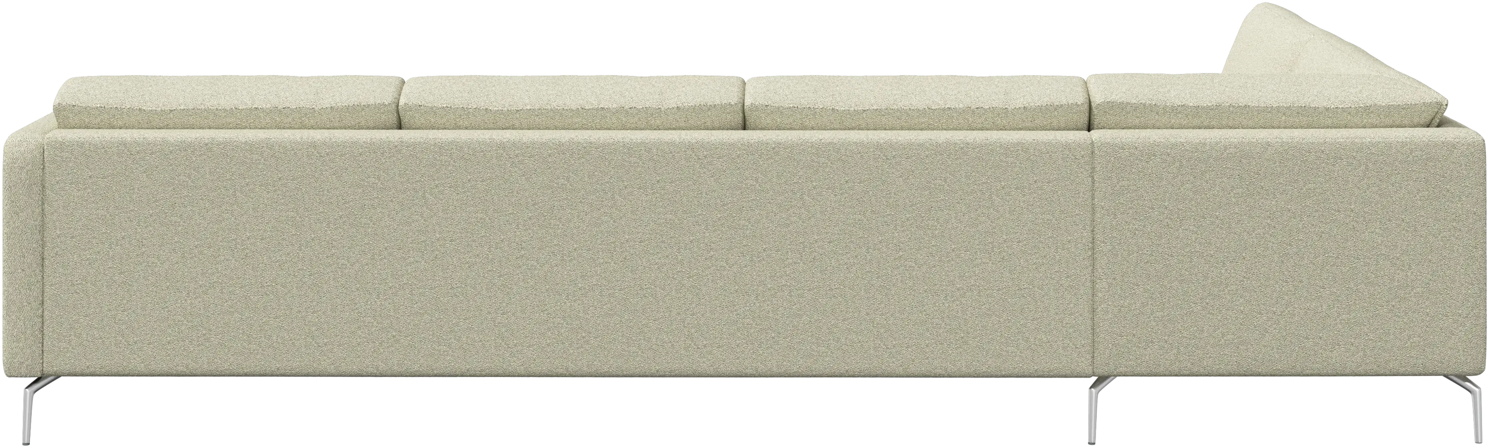 A light look and slim proportions make the Osaka sofa perfect for small homes, while a subtle feminine look and a touch of 60s design ensure that the Osaka sofa still packs a style punch. The beautiful tufted seats add visual softness and bring a classic look to your living room. The classic, straight armrests emphasise the clean lines and Scandinavian look. With plenty of room for the entire family this corner sofa will be the hero of your living room. The open end will create a dynamic, welcoming atmosphere - a true blessing for the integrated areas of open-plan living. Put your feet up, stretch out or use it as an extra seat – you won’t be sorry for choosing this comfortable chaise longue sofa.