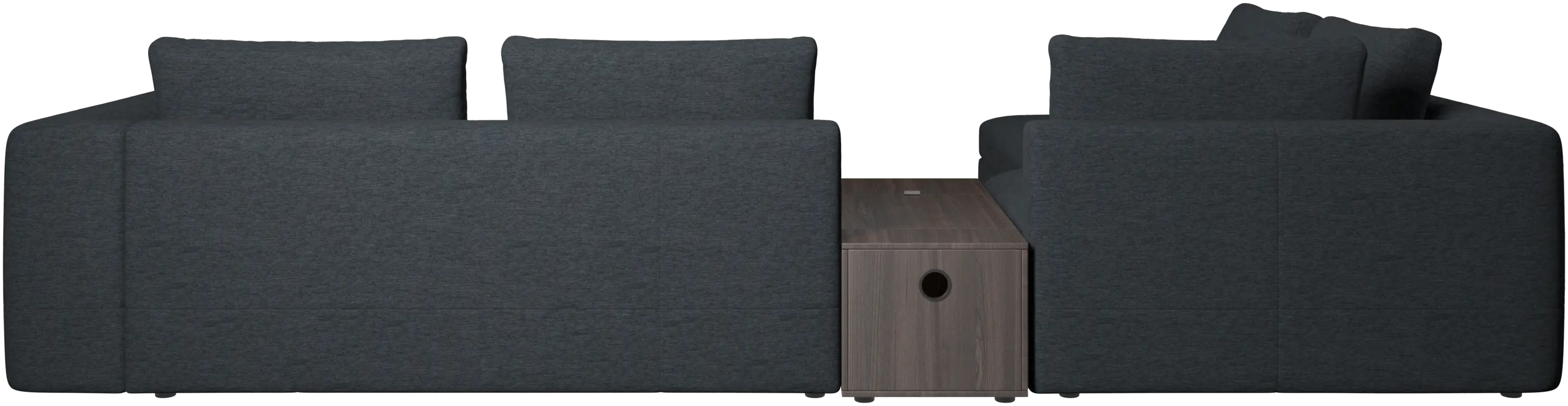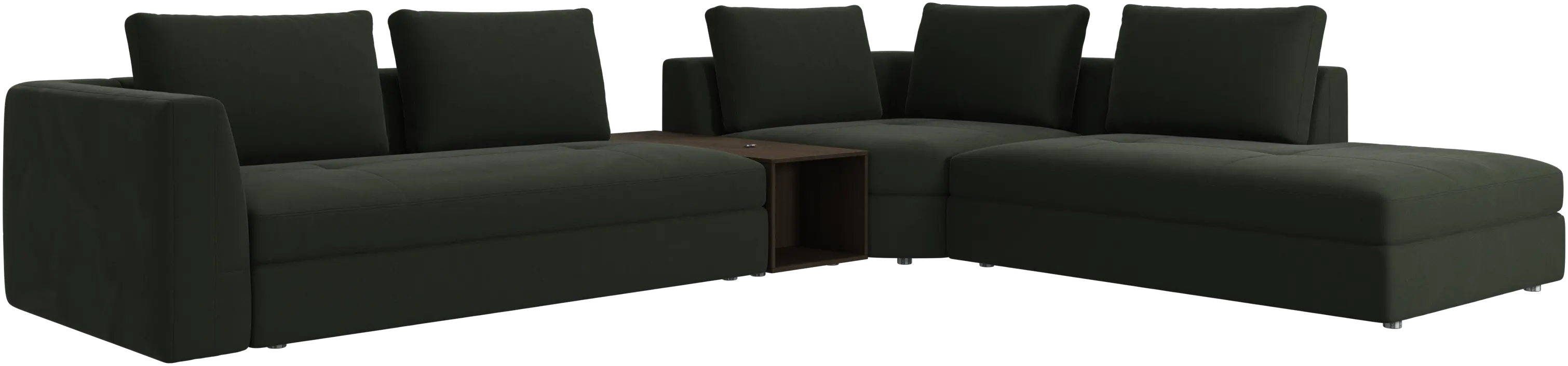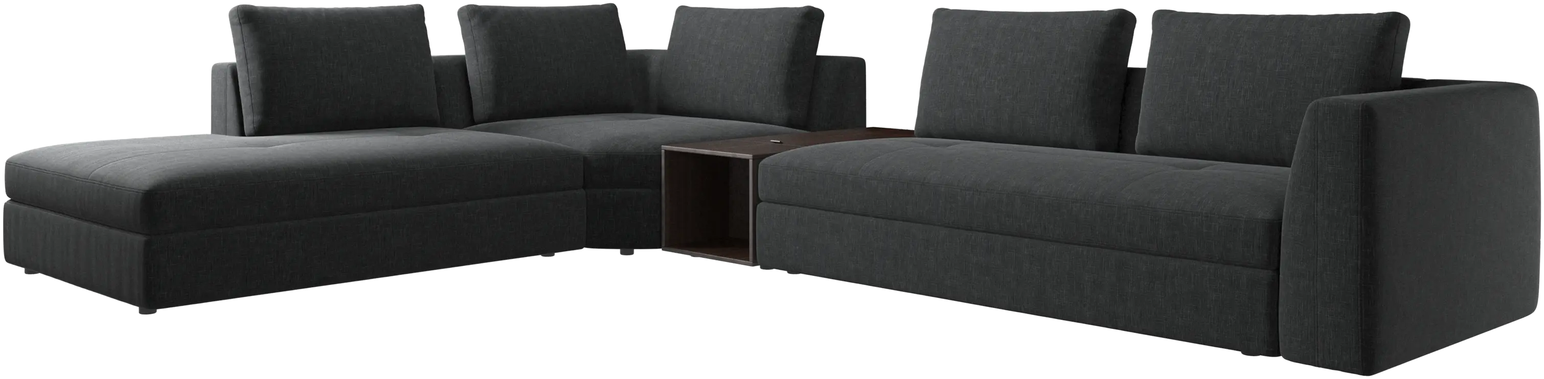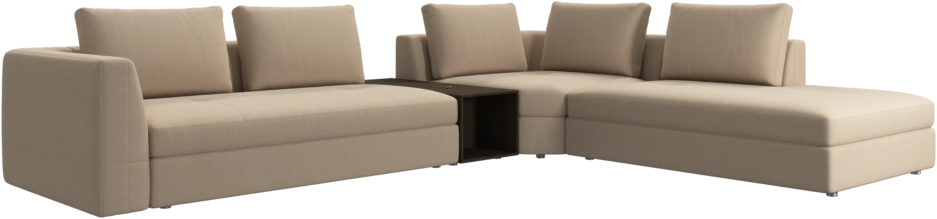 - Bergamo corner sofa with lounging unit and footstool w/storageFabric • Wood₹ 14,94,500.00From ₹ 9,99,500.00