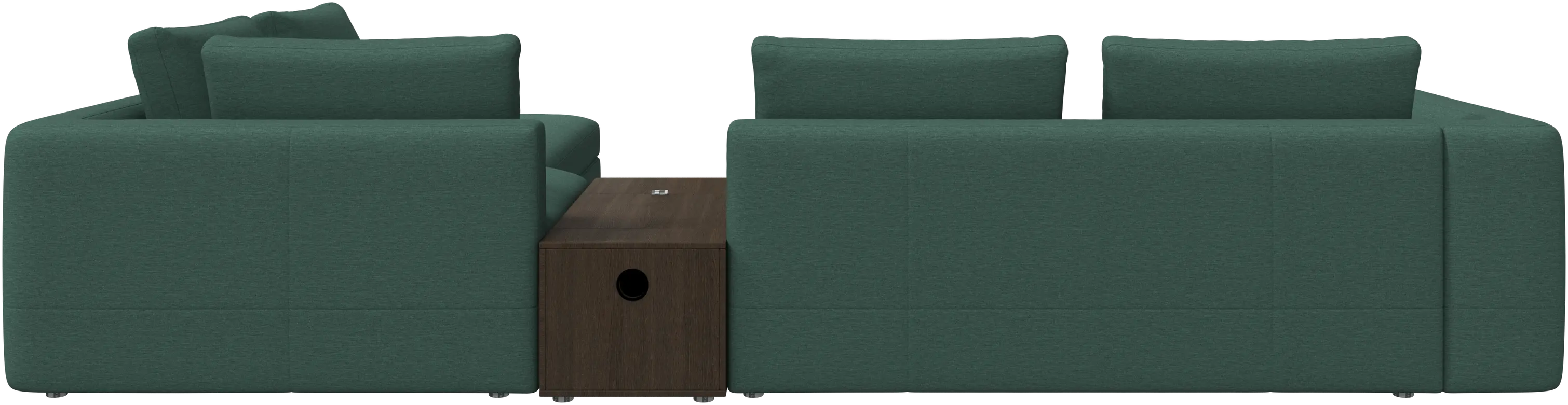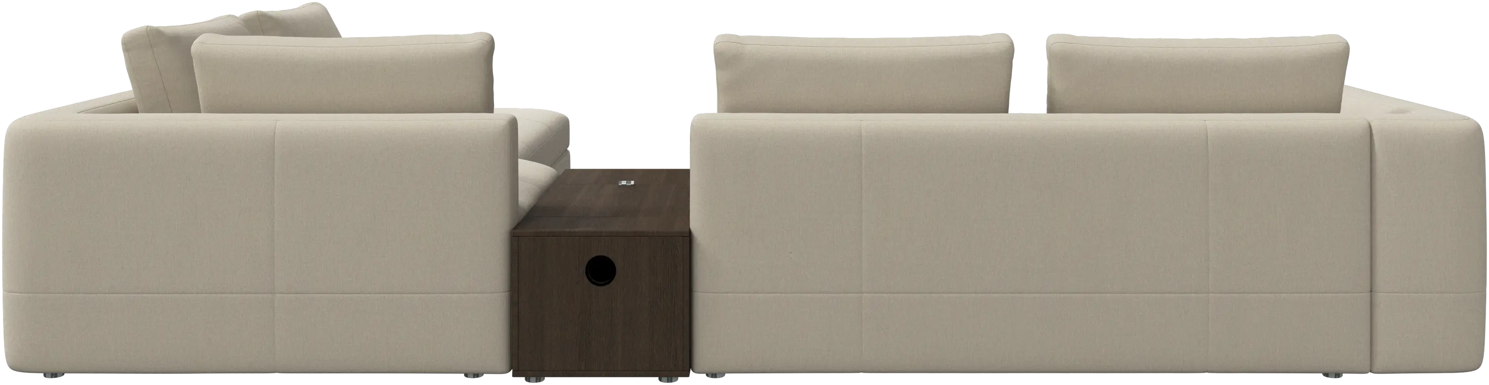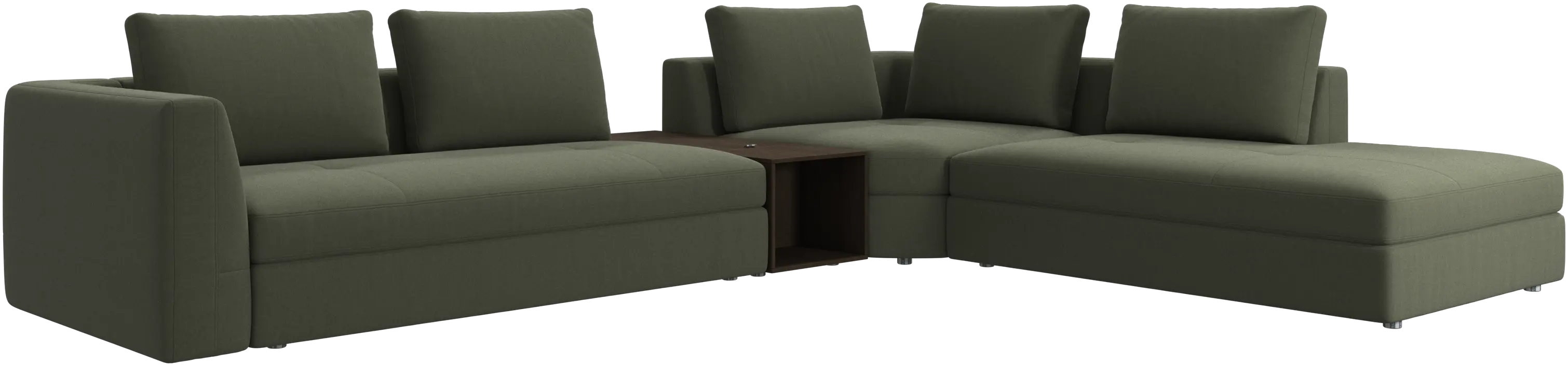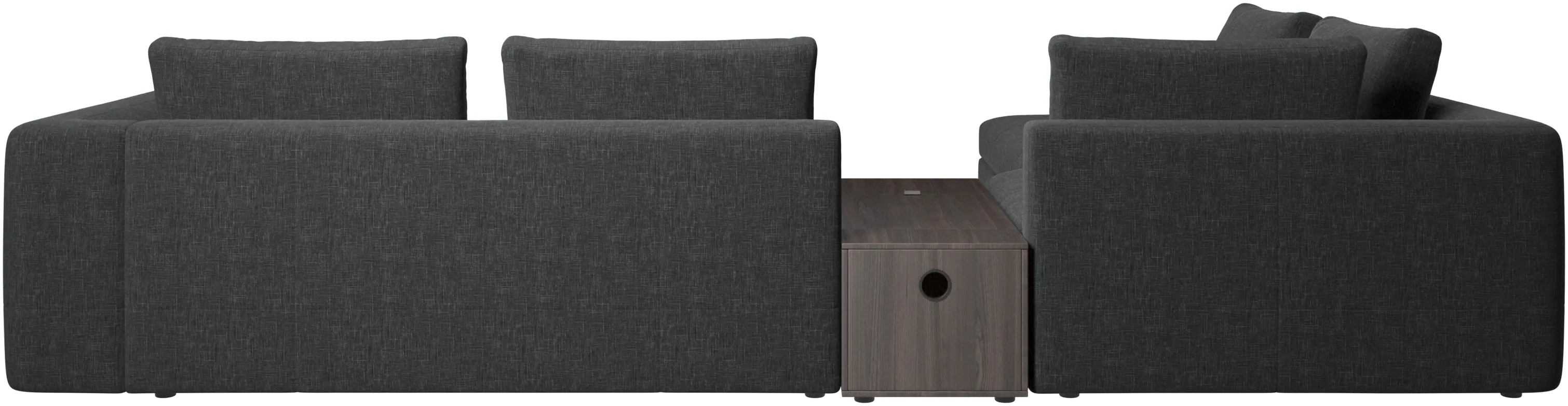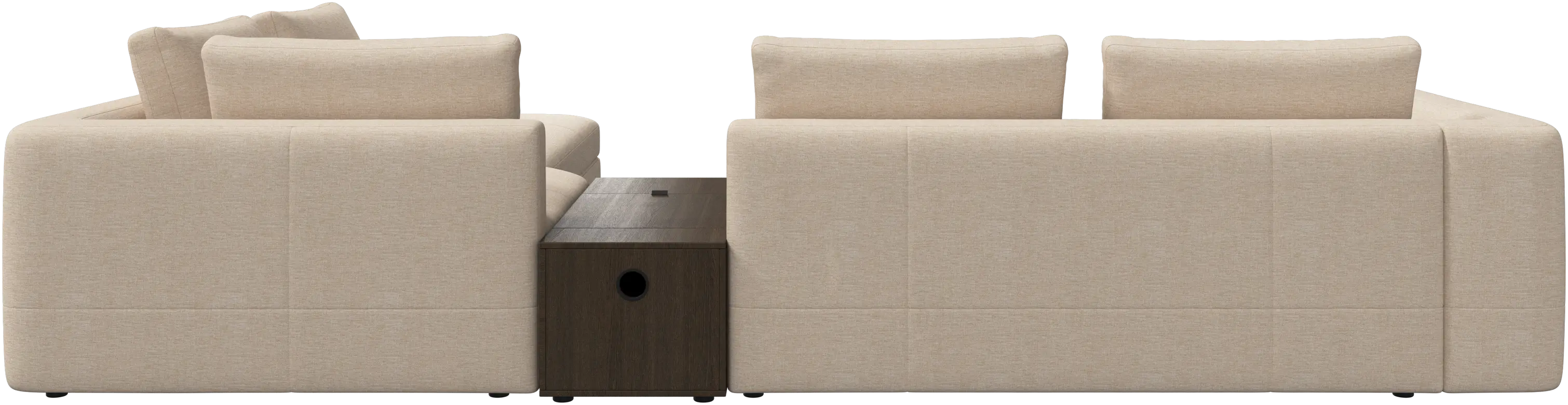 - Bergamo corner sofa with lounging unit and footstool w/storageFabric • Wood₹ 14,94,500.00From ₹ 9,99,500.00