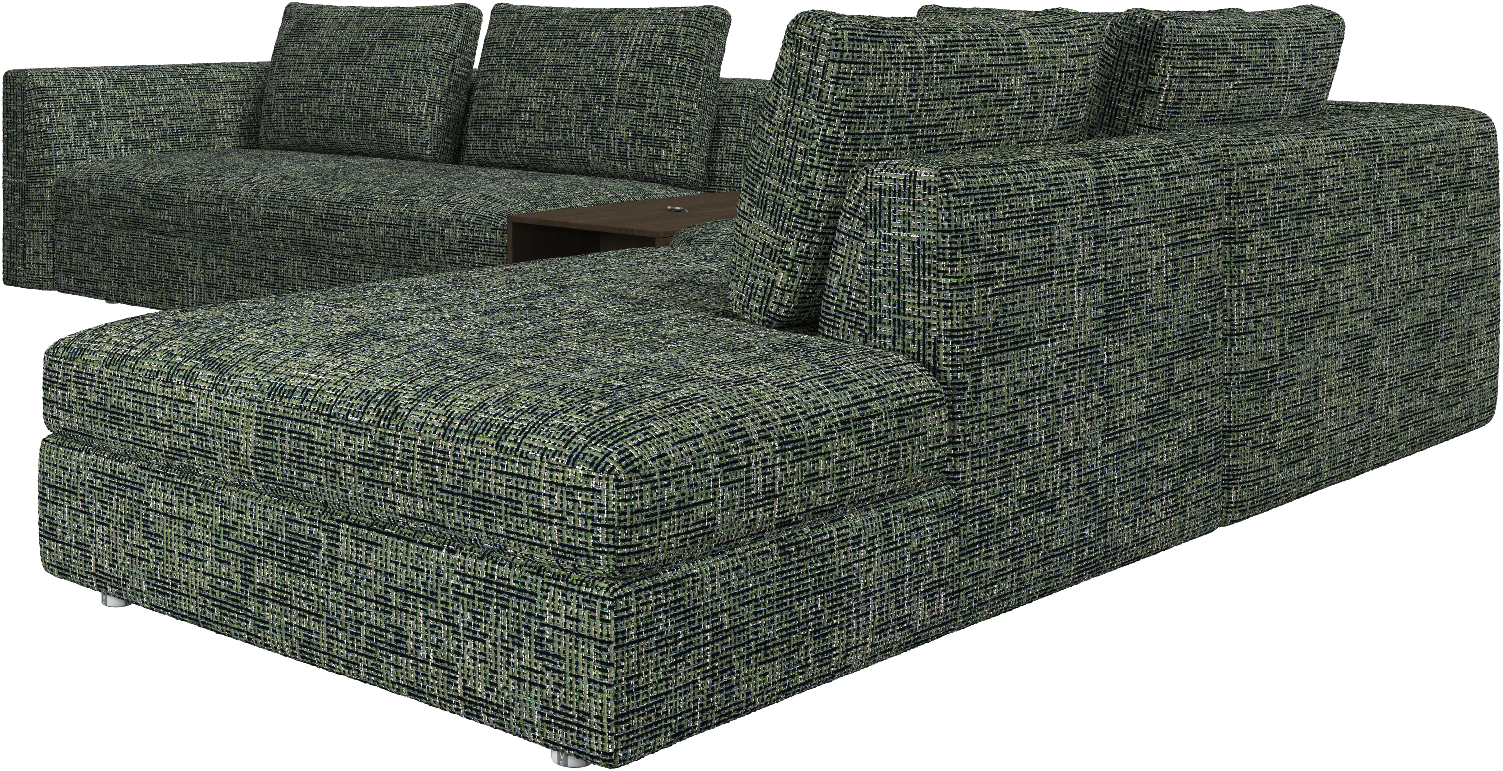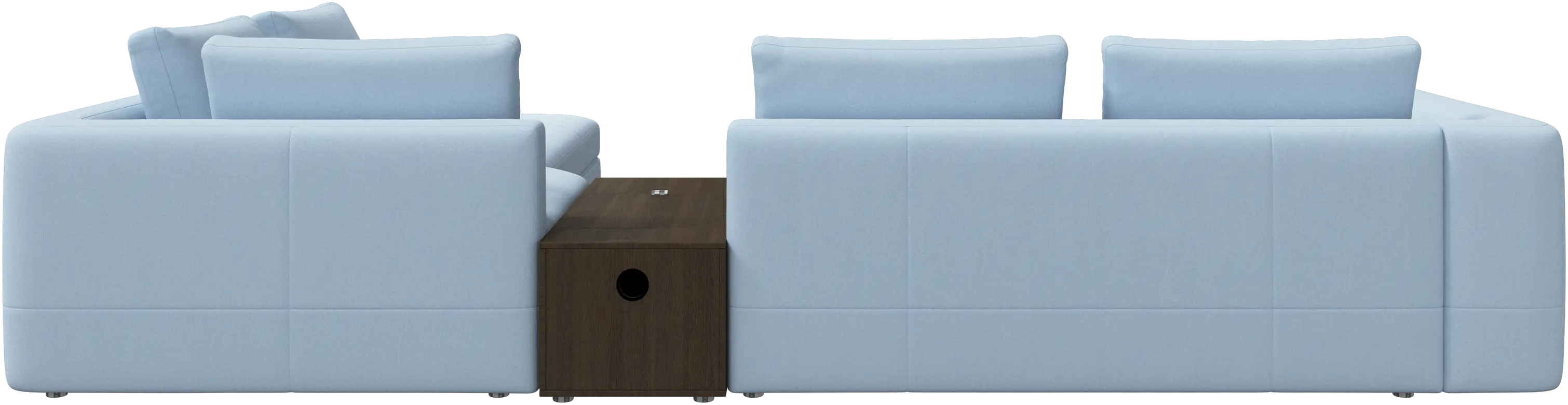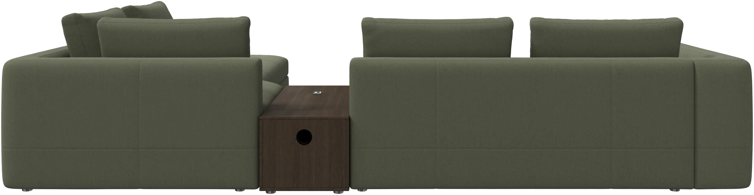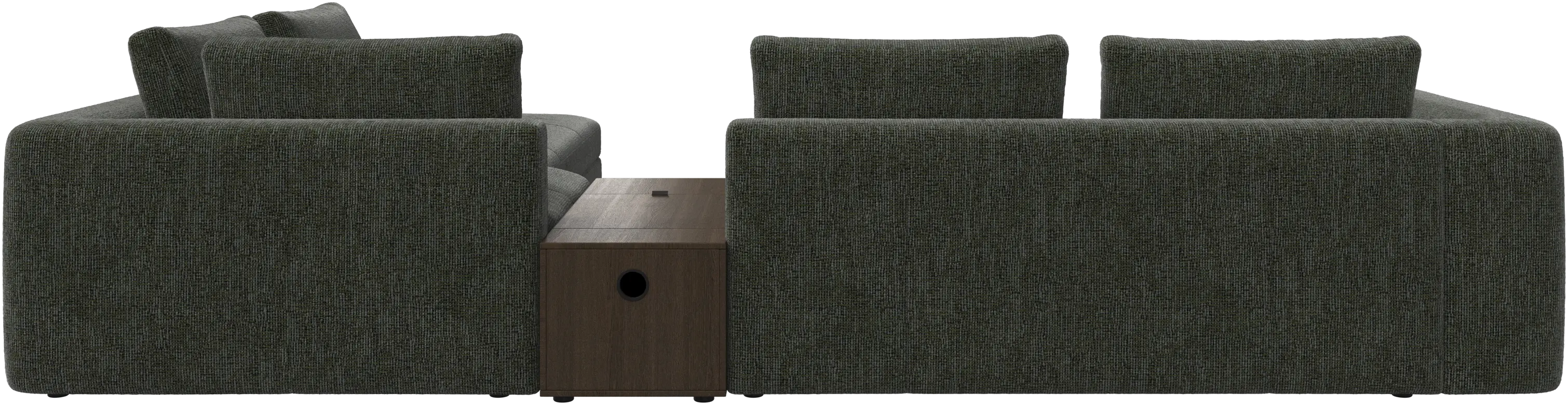 - Bergamo corner sofa with lounging unit and footstool w/storageFabric • Wood₹ 14,94,500.00From ₹ 9,99,500.00
