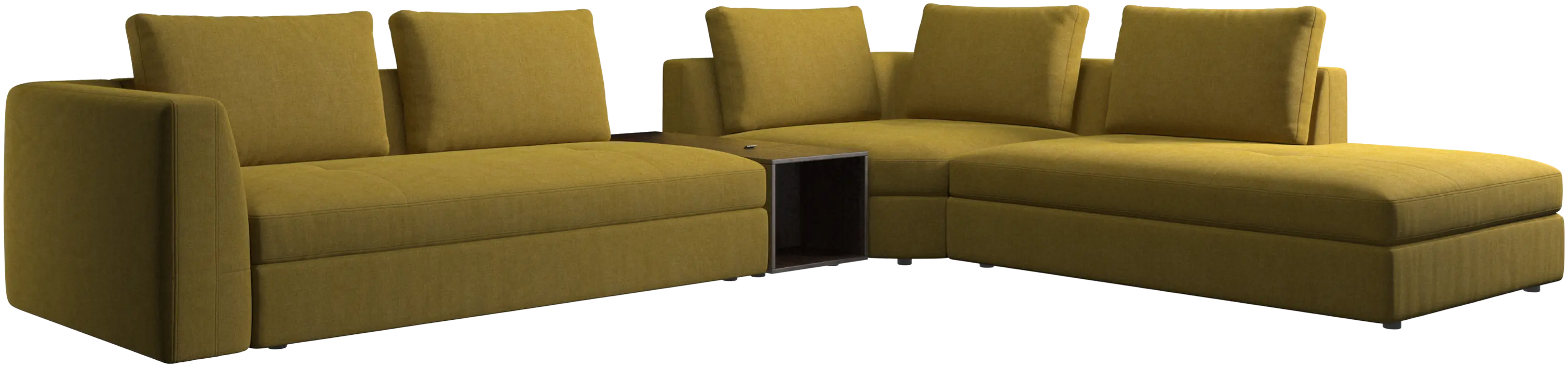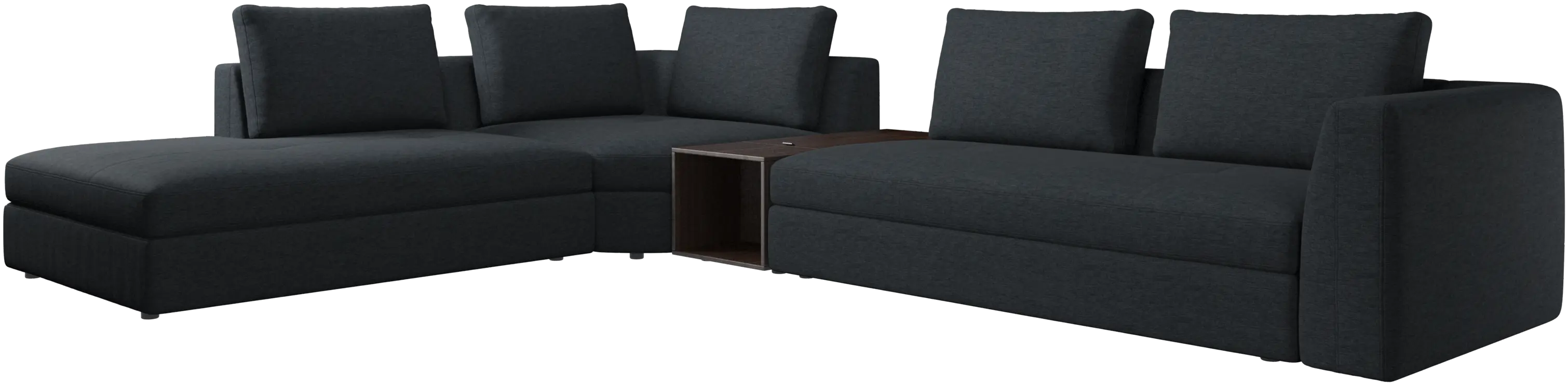 - Bergamo corner sofa with lounging unit and footstool w/storageFabric • Wood₹ 16,59,500.00From ₹ 9,99,500.00