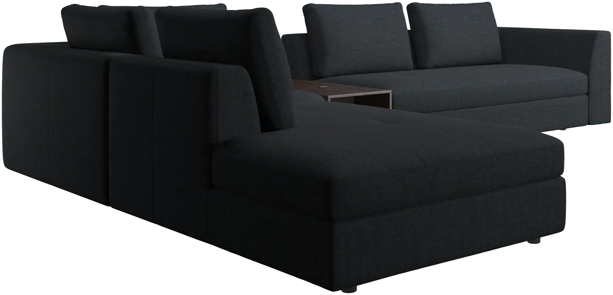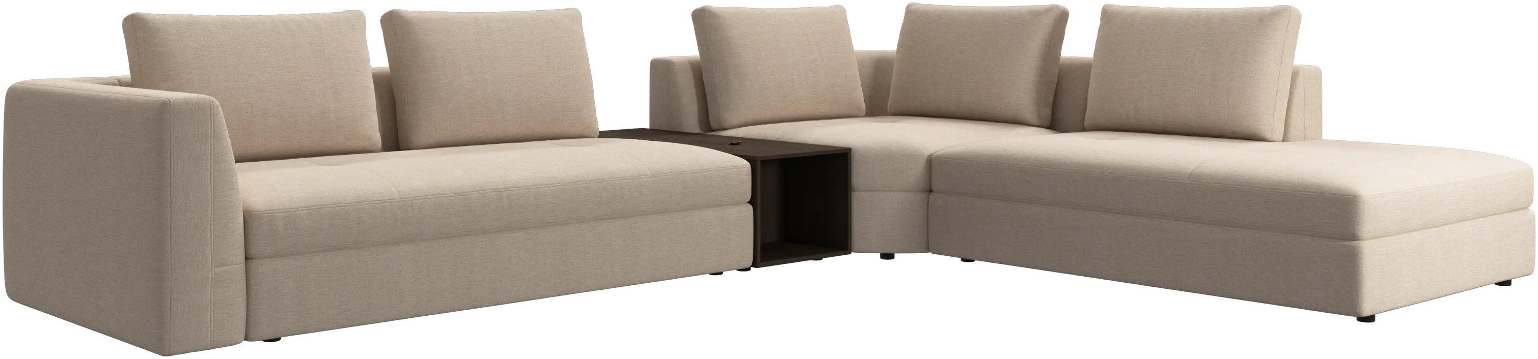 - Bergamo corner sofa with lounging unit and footstool w/storageFabric • Wood₹ 13,49,500.00From ₹ 9,99,500.00