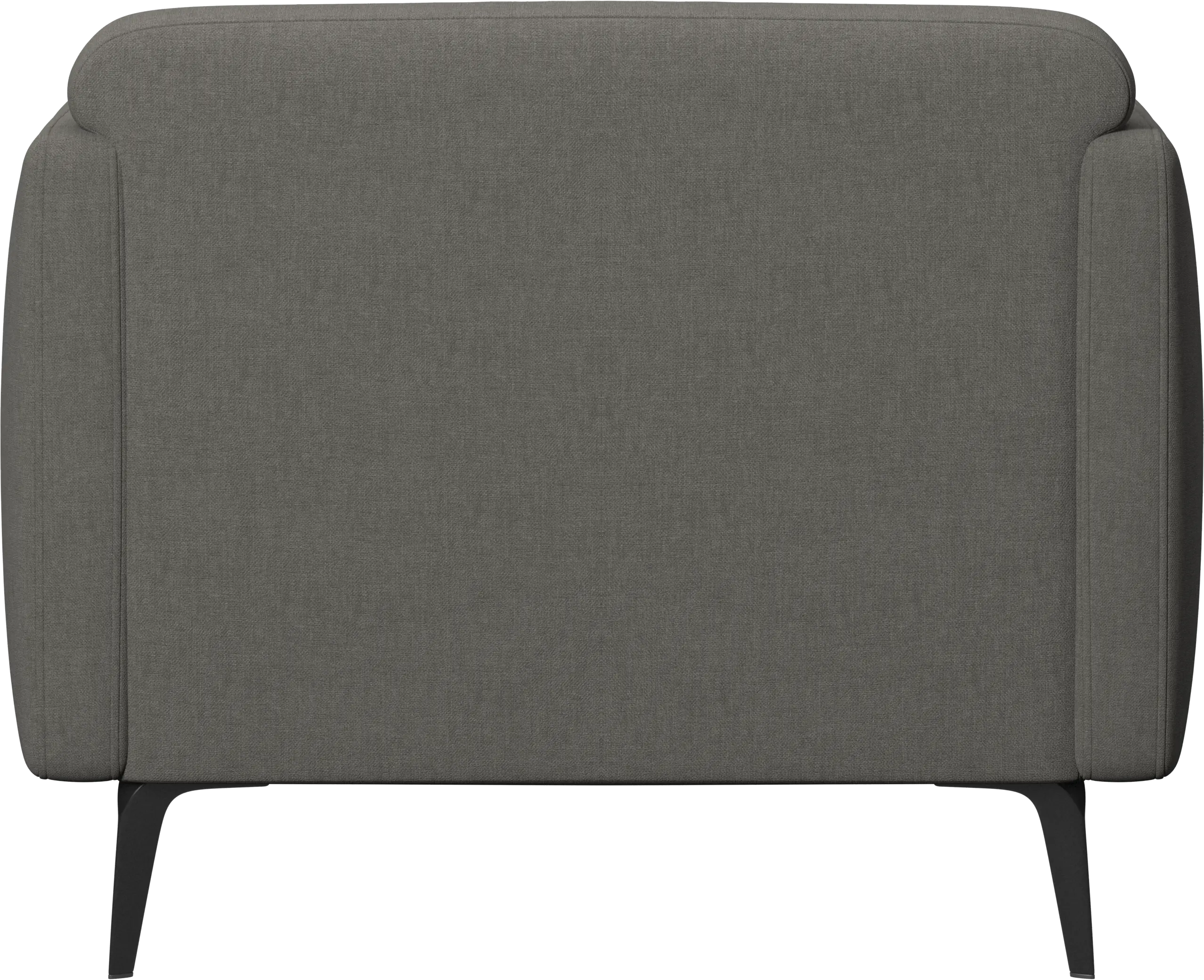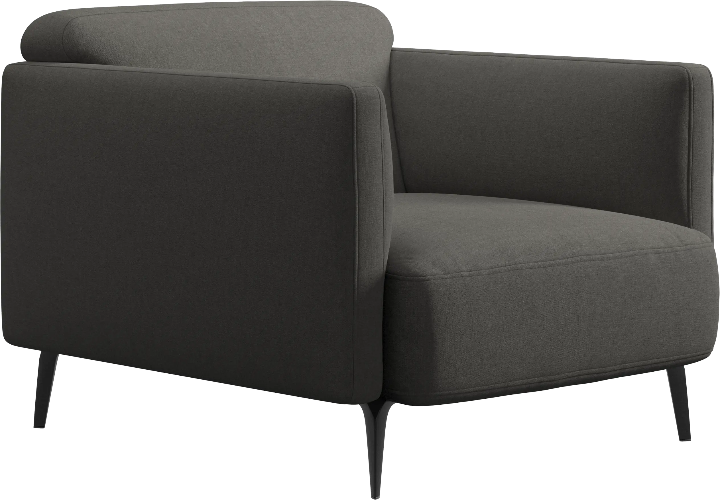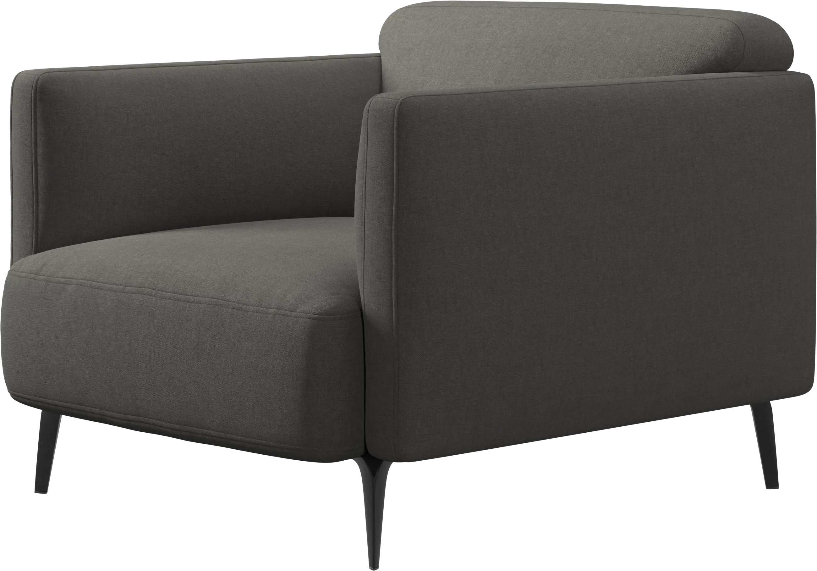 Soft upholstered armrests and rounded edges, gives a lounge feeling underlined by the low back.