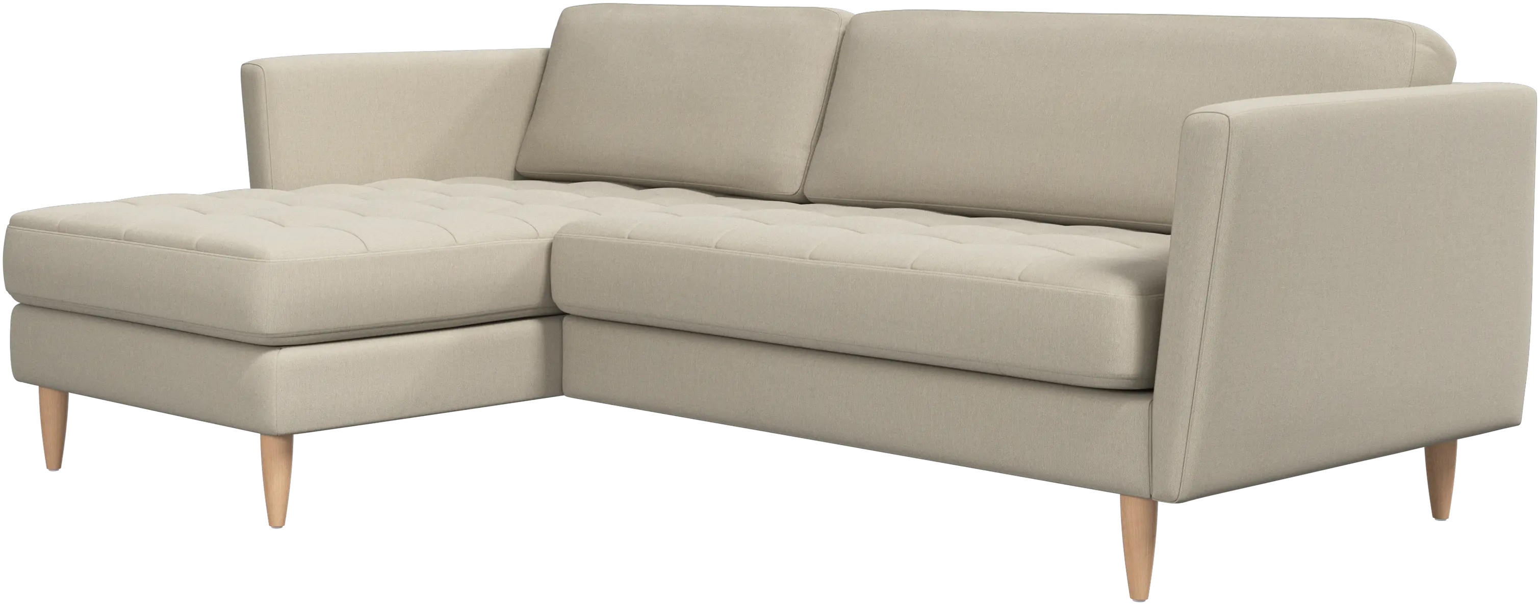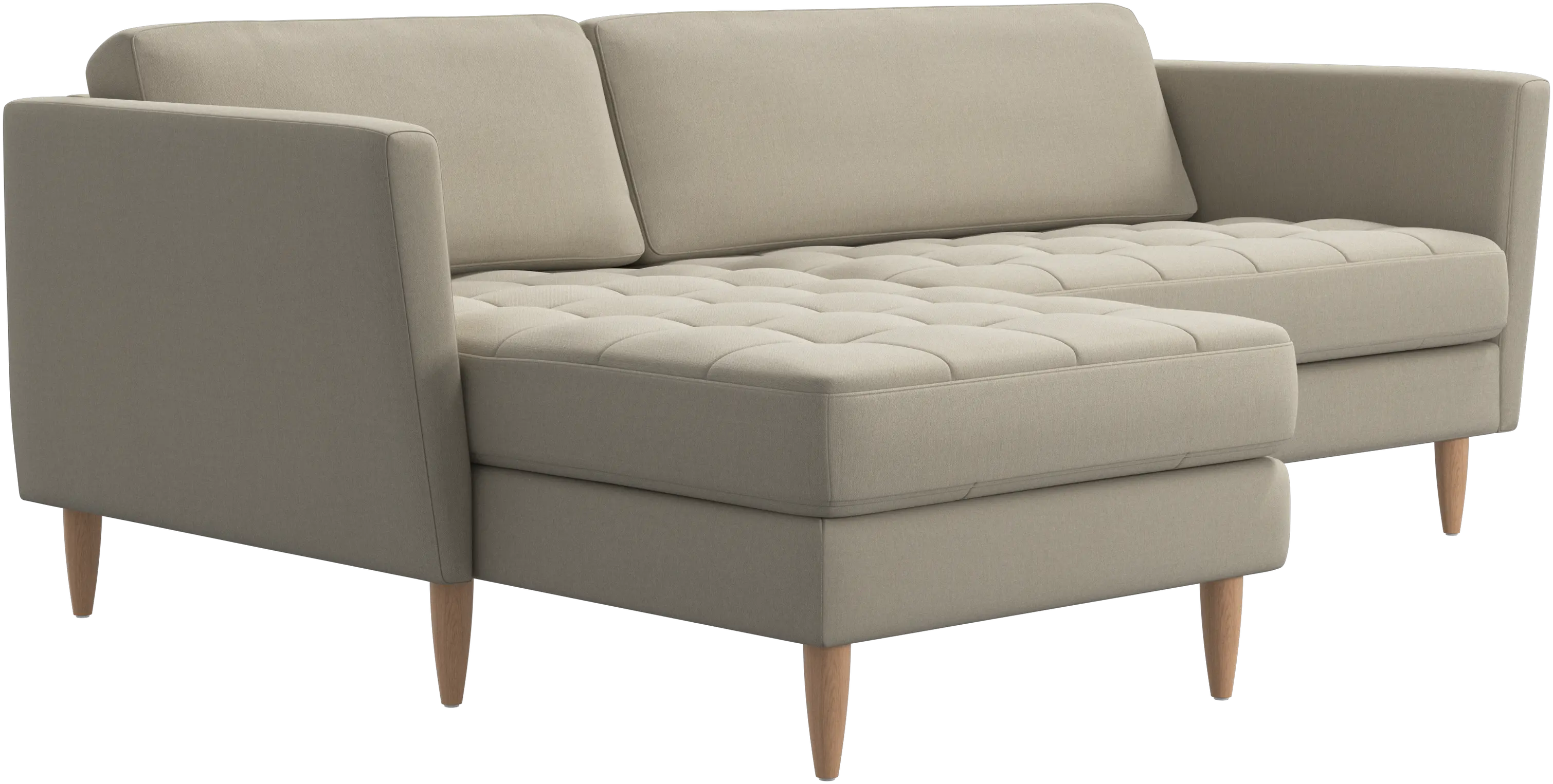 A light look and slim proportions make the Osaka sofa perfect for small homes, while a subtle feminine look and a touch of 60s design ensure that the Osaka sofa still packs a style punch. The beautiful tufted seats add visual softness and bring a classic look to your living room. Inclined armrests give the sofa a modern, unique look and open it up to the rest of the room. Put your feet up, stretch out or use it as an extra seat – you won’t be sorry for choosing this comfortable chaise longue sofa.