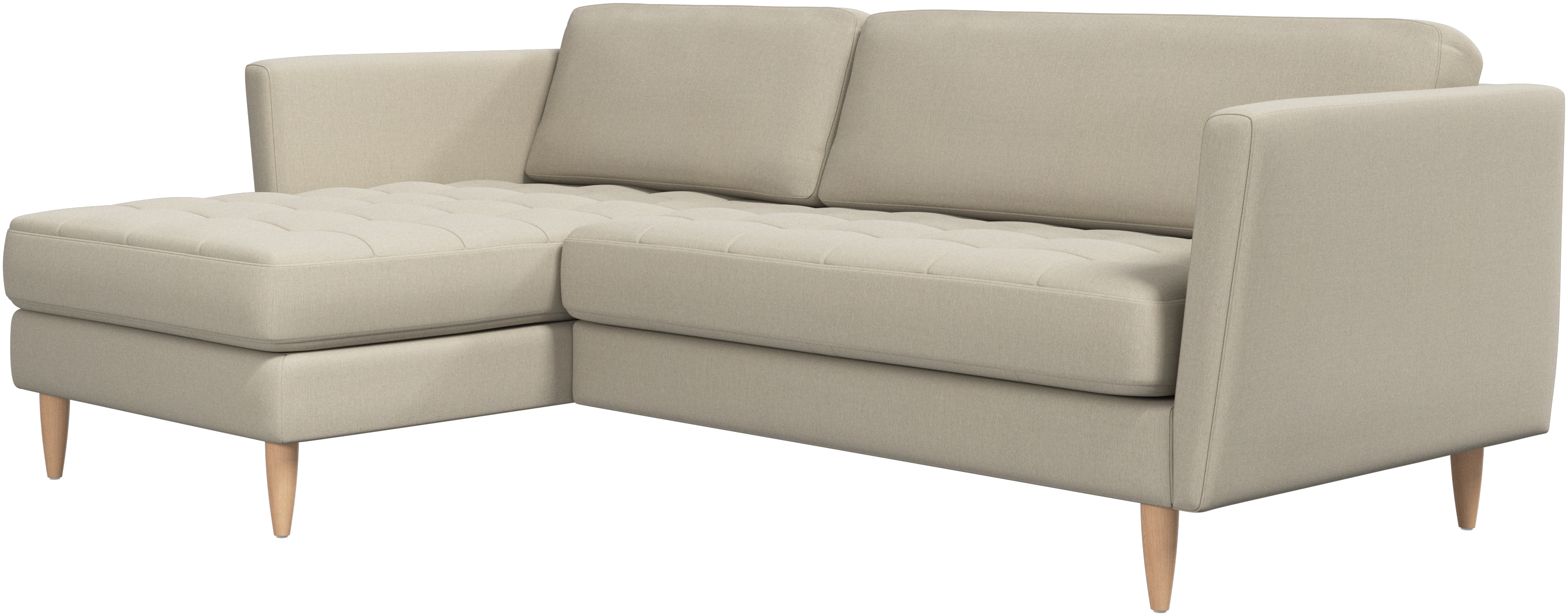 A light look and slim proportions make the Osaka sofa perfect for small homes, while a subtle feminine look and a touch of 60s design ensure that the Osaka sofa still packs a style punch. The beautiful tufted seats add visual softness and bring a classic look to your living room. Inclined armrests give the sofa a modern, unique look and open it up to the rest of the room. Put your feet up, stretch out or use it as an extra seat – you won’t be sorry for choosing this comfortable chaise longue sofa.