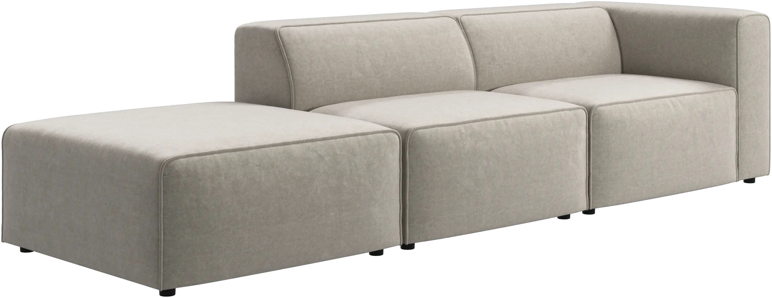Carmo is a modular sofa system that can be bought as single modules. When doing so, the modules come fully upholstered with crocodile connectors ensuring easy attachment and detachment.