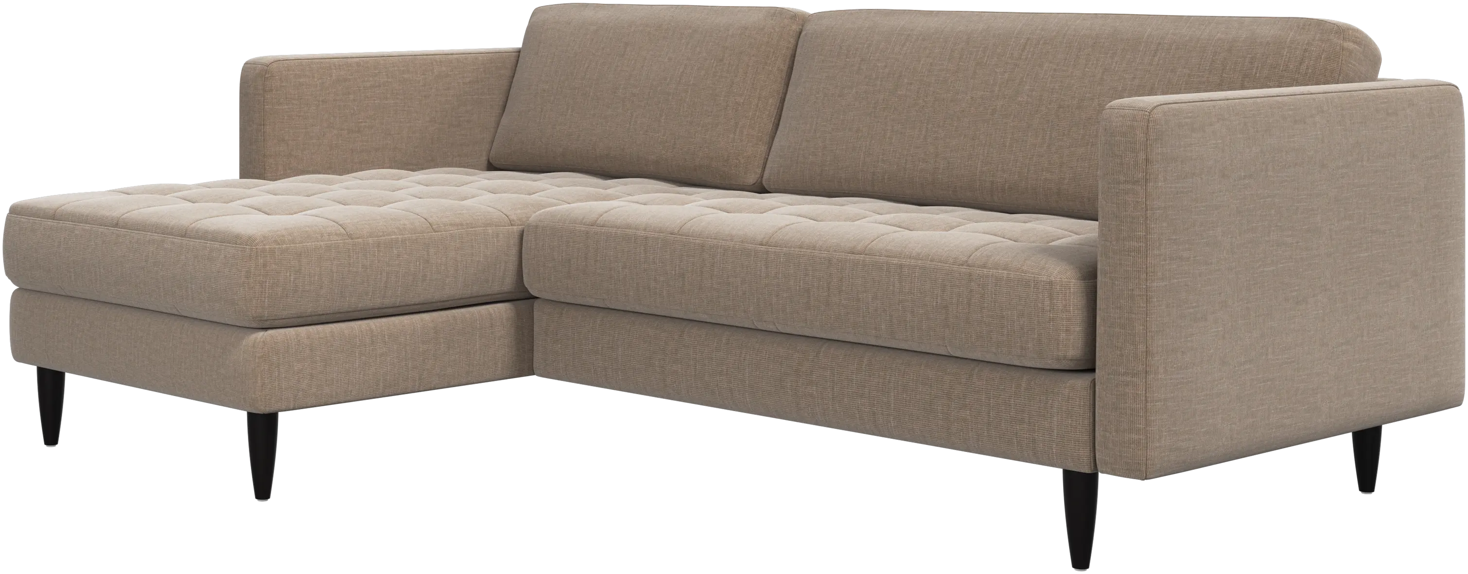 A light look and slim proportions make the Osaka sofa perfect for small homes, while a subtle feminine look and a touch of 60s design ensure that the Osaka sofa still packs a style punch. The beautiful tufted seats add visual softness and bring a classic look to your living room. The classic, straight armrests emphasise the clean lines and Scandinavian look. Put your feet up, stretch out or use it as an extra seat – you won’t be sorry for choosing this comfortable chaise longue sofa.