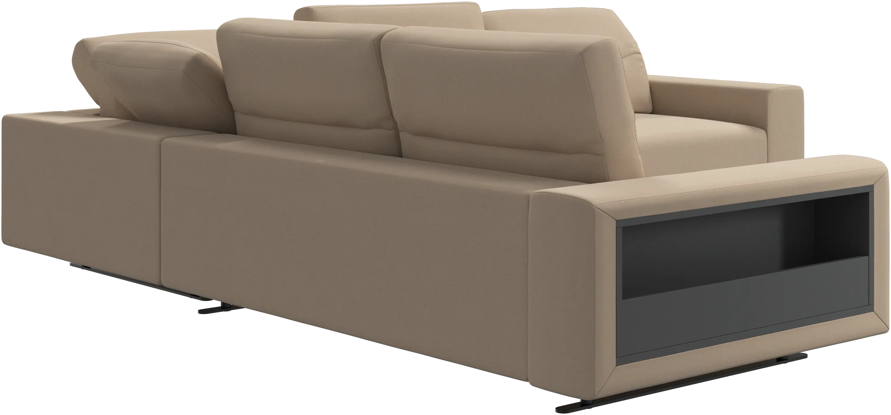 We know. It’s beautiful. But the modern Hampton sofa is much more than just good looks. A low base, a stunning loft look, adjustable backrests for comfort and visual impact – the Hampton sofa is the perfect personal retreat. With plenty of room for the entire family this corner sofa will be the hero of your living room. And with clever built-in storage in the armrest, you will always have your living room essentials at hand.