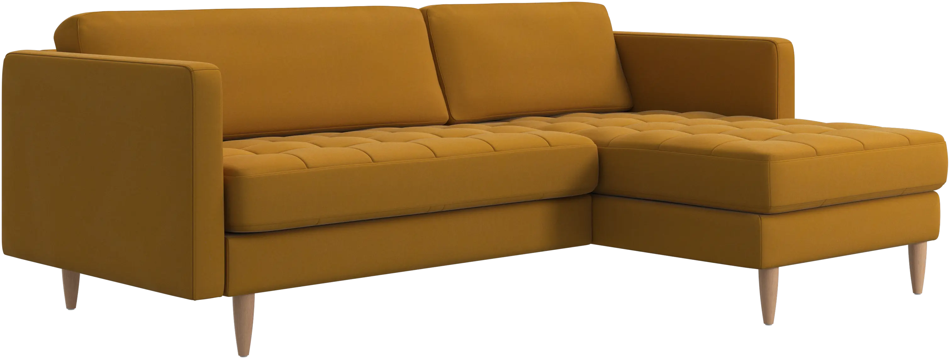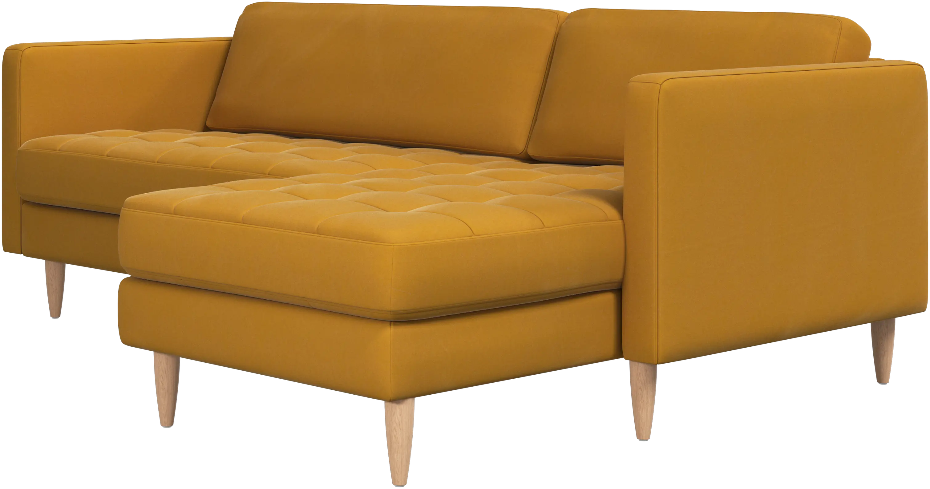 A light look and slim proportions make the Osaka sofa perfect for small homes, while a subtle feminine look and a touch of 60s design ensure that the Osaka sofa still packs a style punch. The beautiful tufted seats add visual softness and bring a classic look to your living room. The classic, straight armrests emphasise the clean lines and Scandinavian look. Put your feet up, stretch out or use it as an extra seat – you won’t be sorry for choosing this comfortable chaise longue sofa.