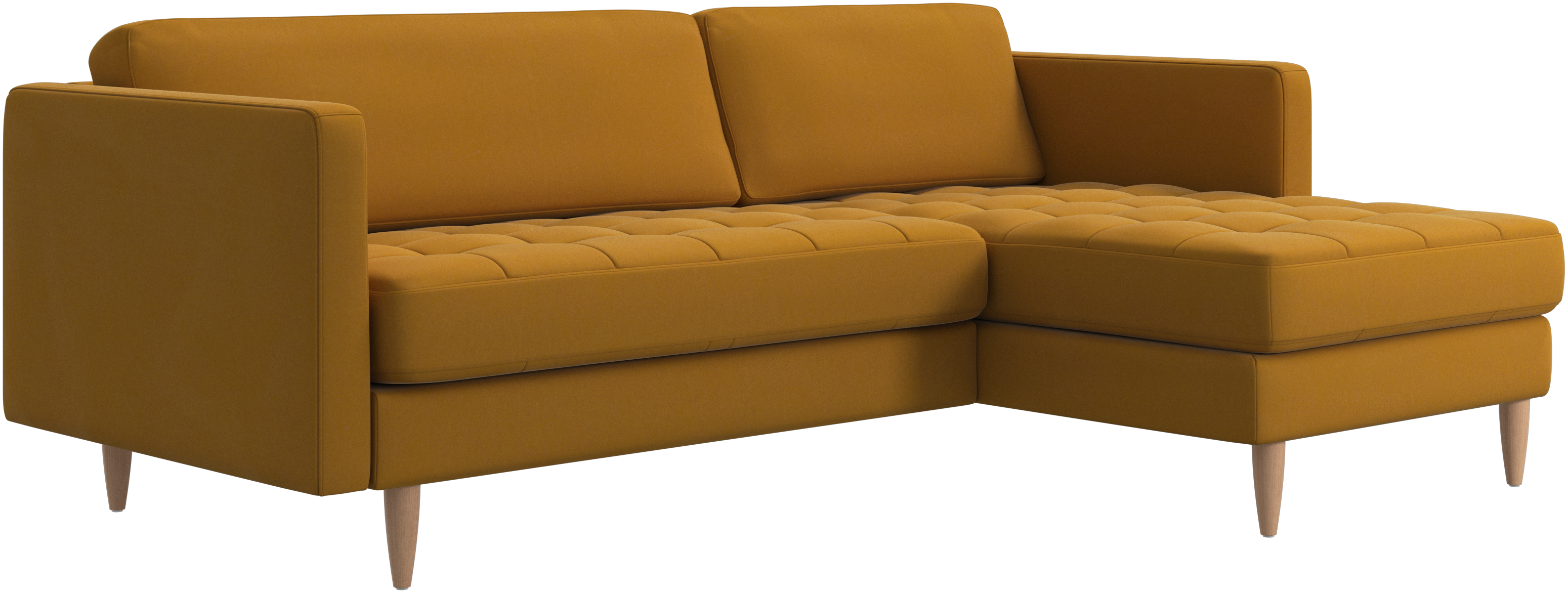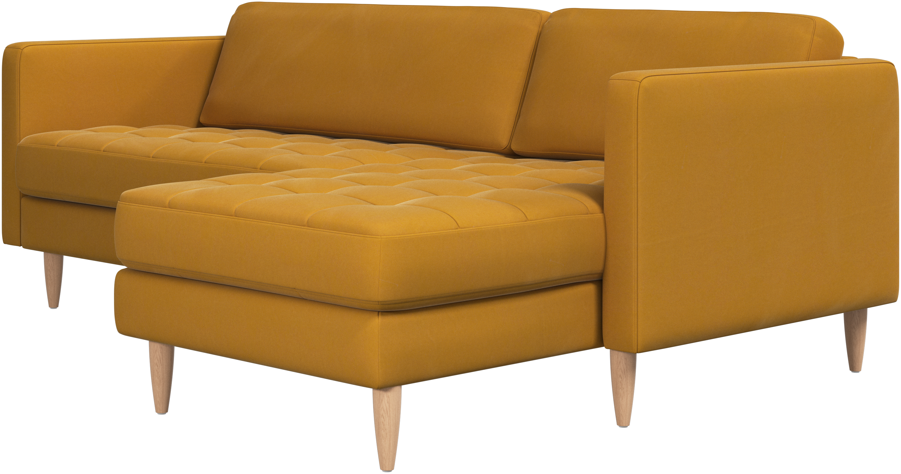A light look and slim proportions make the Osaka sofa perfect for small homes, while a subtle feminine look and a touch of 60s design ensure that the Osaka sofa still packs a style punch. The beautiful tufted seats add visual softness and bring a classic look to your living room. The classic, straight armrests emphasise the clean lines and Scandinavian look. Put your feet up, stretch out or use it as an extra seat – you won’t be sorry for choosing this comfortable chaise longue sofa.