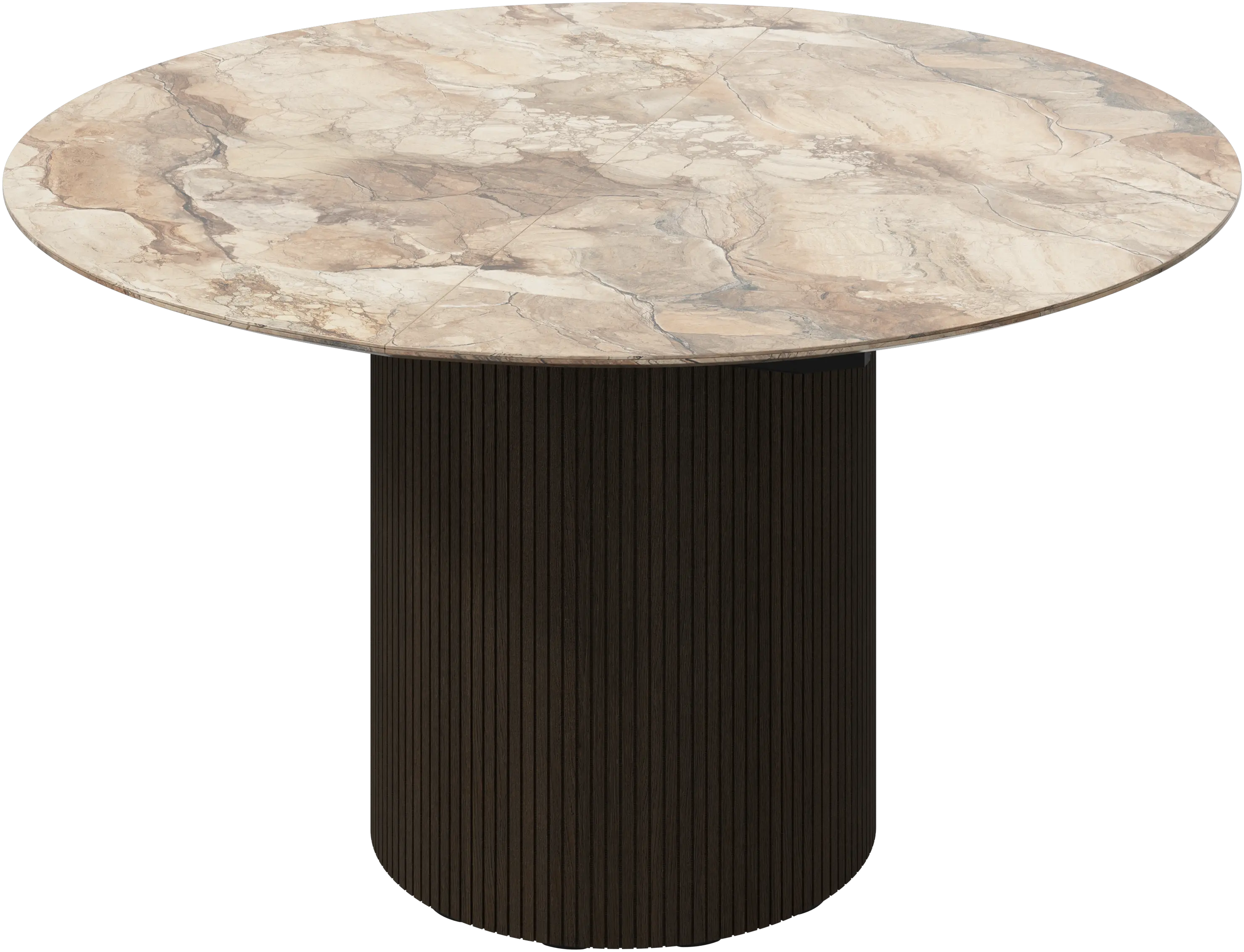 A natural gathering place for family and friends, the Santiago round dining table combines elegant Danish design with integrated extension functionality. It serves as a simple yet striking focal point for your dining room, featuring a smoothly curved base adorned with intricate, bevelled details.