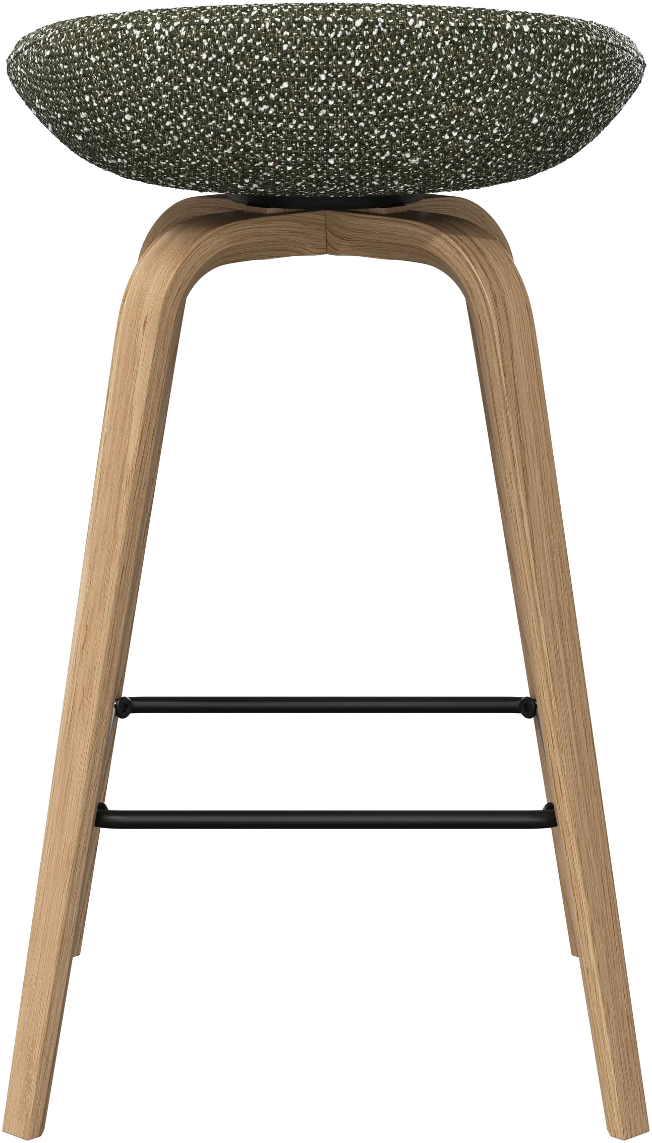 With a soft, organic form, the Hauge barstool is your stylish solution for elevated seating. It has a fixed height to fit your home bar or open kitchen space and a metal footrest for contemporary comfort.
