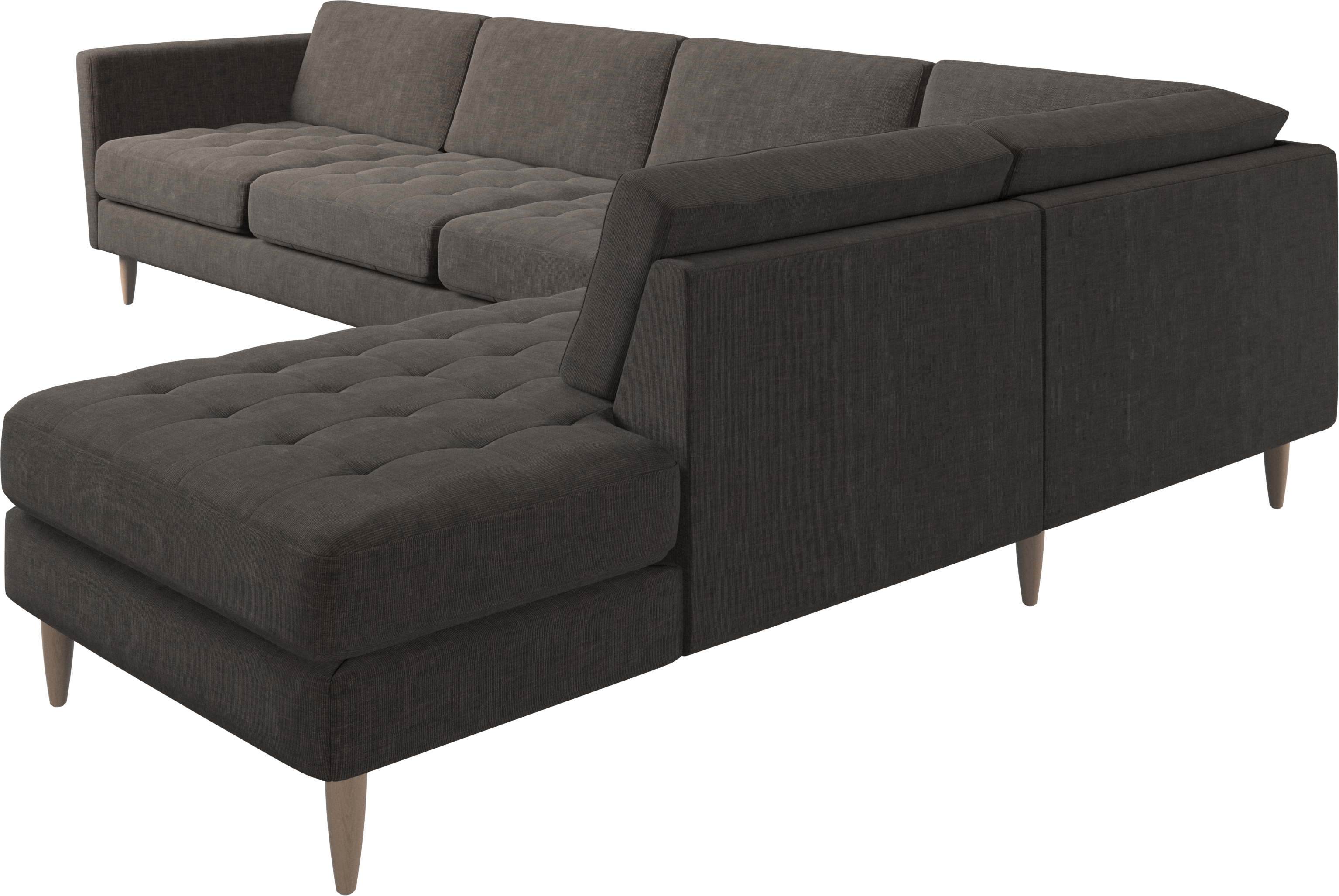 A light look and slim proportions make the Osaka sofa perfect for small homes, while a subtle feminine look and a touch of 60s design ensure that the Osaka sofa still packs a style punch. The beautiful tufted seats add visual softness and bring a classic look to your living room. Inclined armrests give the sofa a modern, unique look and open it up to the rest of the room. With plenty of room for the entire family this corner sofa will be the hero of your living room. The open end will create a dynamic, welcoming atmosphere - a true blessing for the integrated areas of open-plan living. Put your feet up, stretch out or use it as an extra seat – you won’t be sorry for choosing this comfortable chaise longue sofa.