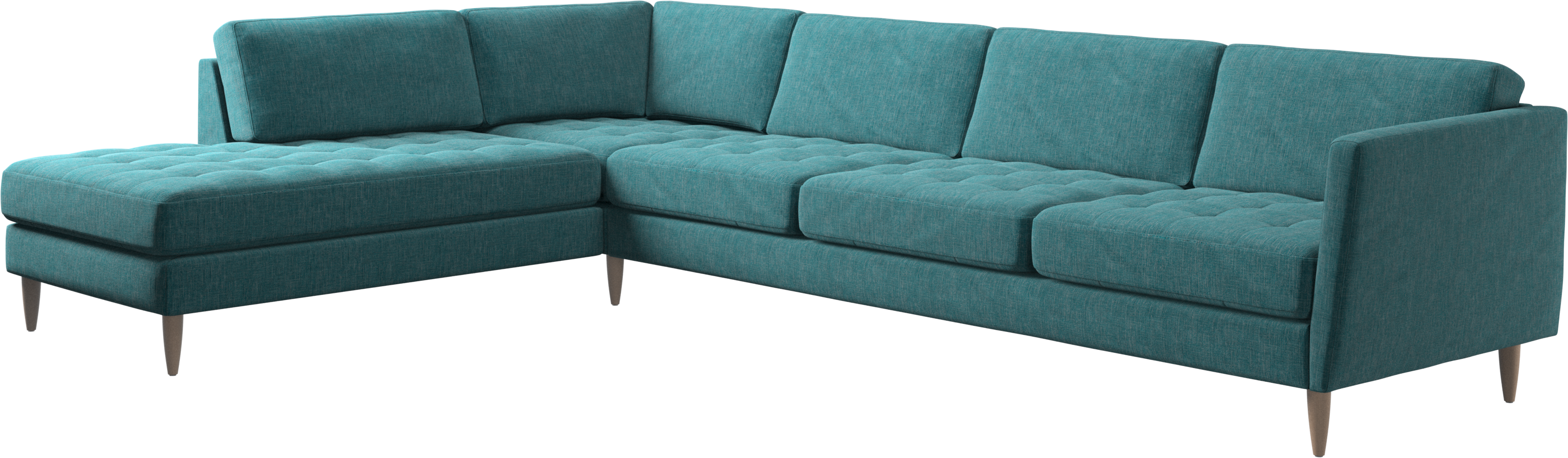 A light look and slim proportions make the Osaka sofa perfect for small homes, while a subtle feminine look and a touch of 60s design ensure that the Osaka sofa still packs a style punch. The beautiful tufted seats add visual softness and bring a classic look to your living room. Inclined armrests give the sofa a modern, unique look and open it up to the rest of the room. With plenty of room for the entire family this corner sofa will be the hero of your living room. The open end will create a dynamic, welcoming atmosphere - a true blessing for the integrated areas of open-plan living. Put your feet up, stretch out or use it as an extra seat – you won’t be sorry for choosing this comfortable chaise longue sofa.