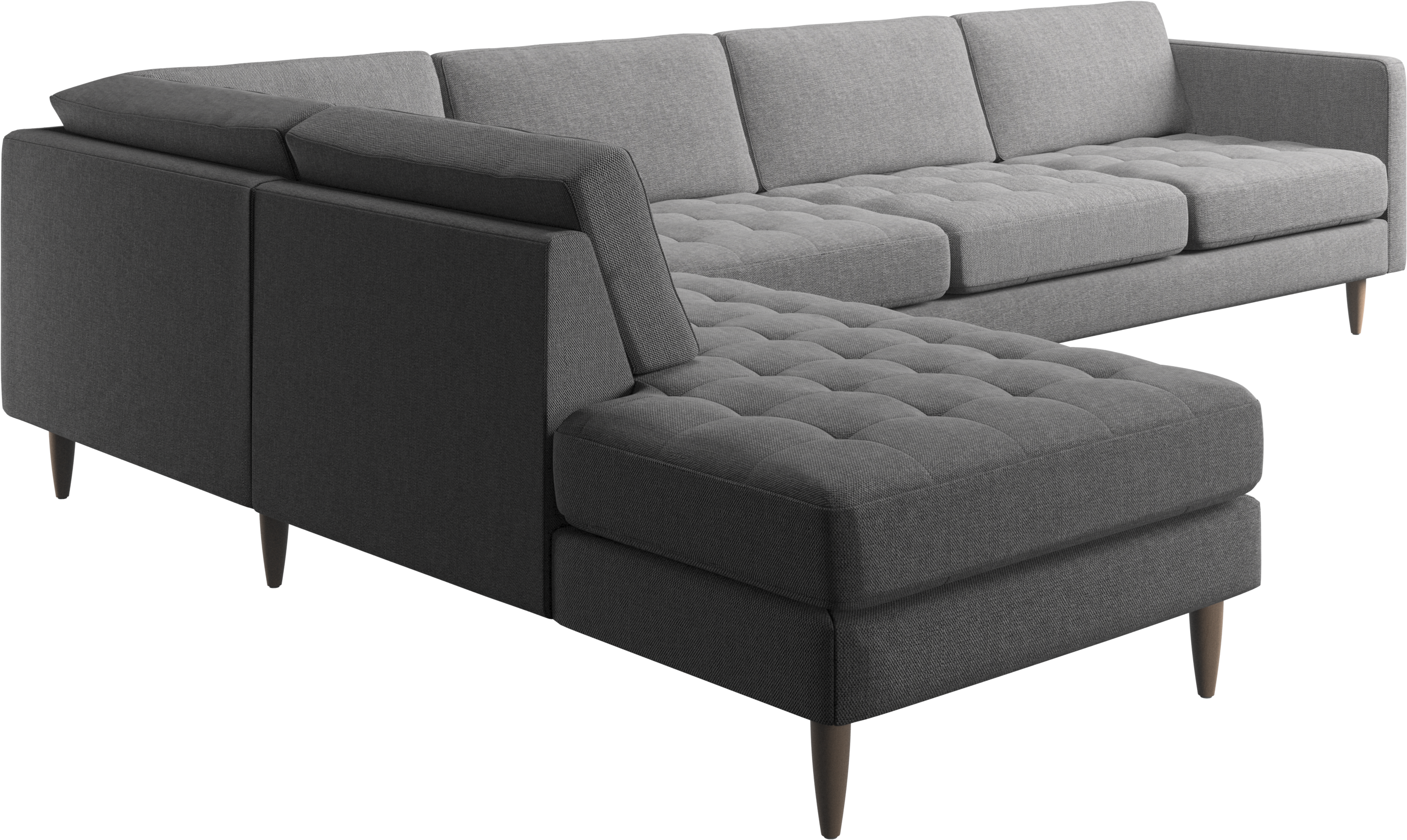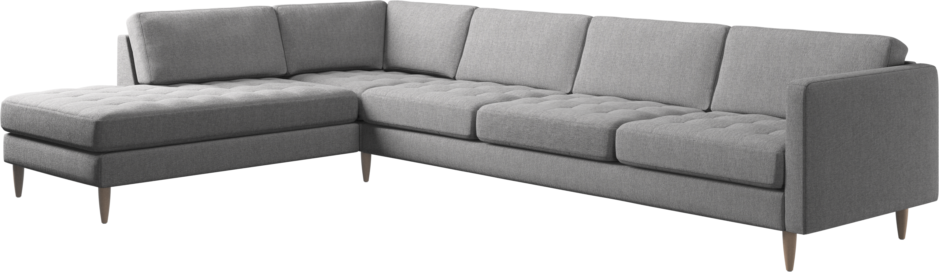 A light look and slim proportions make the Osaka sofa perfect for small homes, while a subtle feminine look and a touch of 60s design ensure that the Osaka sofa still packs a style punch. The beautiful tufted seats add visual softness and bring a classic look to your living room. The classic, straight armrests emphasise the clean lines and Scandinavian look. With plenty of room for the entire family this corner sofa will be the hero of your living room. The open end will create a dynamic, welcoming atmosphere - a true blessing for the integrated areas of open-plan living. Put your feet up, stretch out or use it as an extra seat – you won’t be sorry for choosing this comfortable chaise longue sofa.