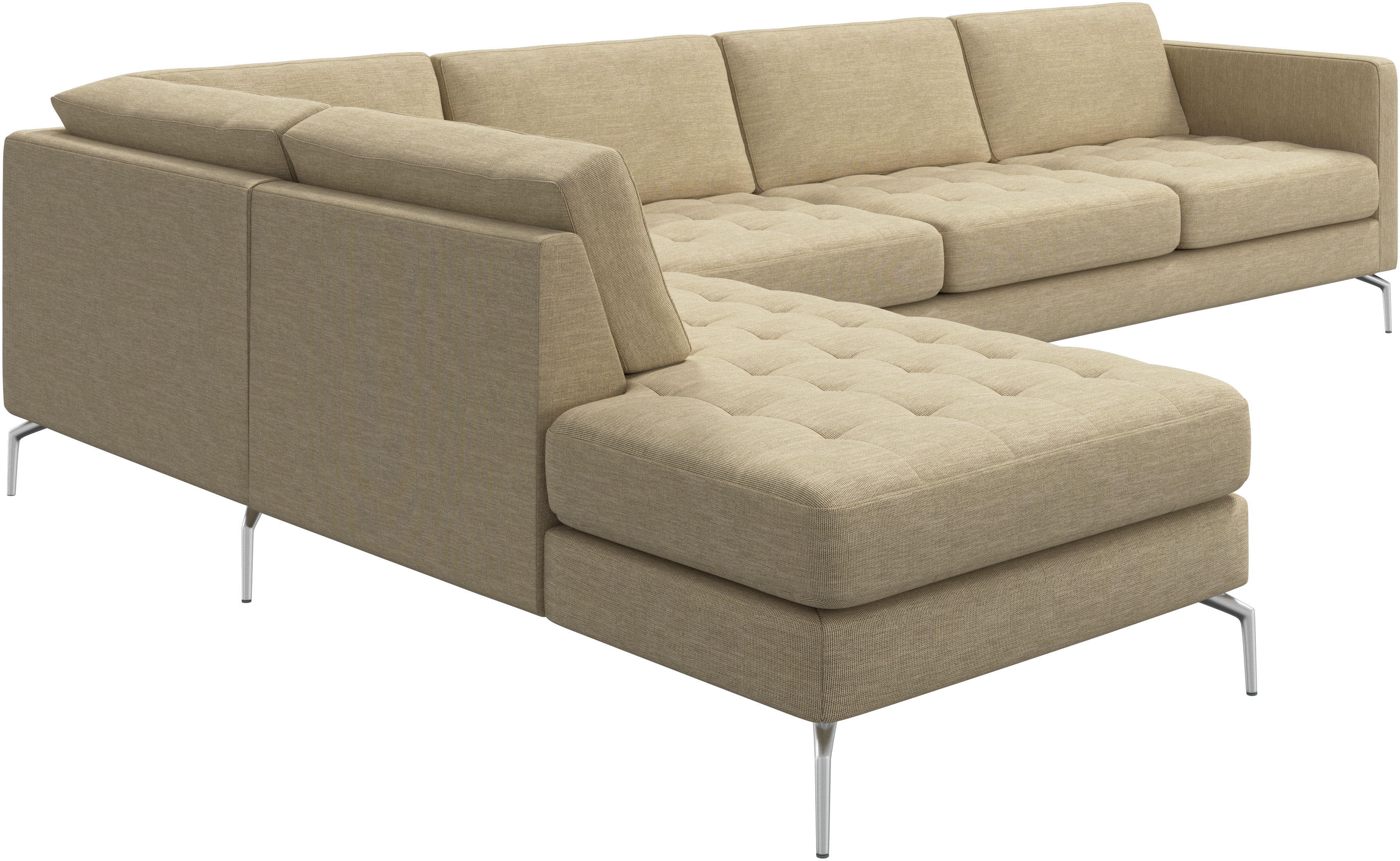 A light look and slim proportions make the Osaka sofa perfect for small homes, while a subtle feminine look and a touch of 60s design ensure that the Osaka sofa still packs a style punch. The beautiful tufted seats add visual softness and bring a classic look to your living room. The classic, straight armrests emphasise the clean lines and Scandinavian look. With plenty of room for the entire family this corner sofa will be the hero of your living room. The open end will create a dynamic, welcoming atmosphere - a true blessing for the integrated areas of open-plan living. Put your feet up, stretch out or use it as an extra seat – you won’t be sorry for choosing this comfortable chaise longue sofa.