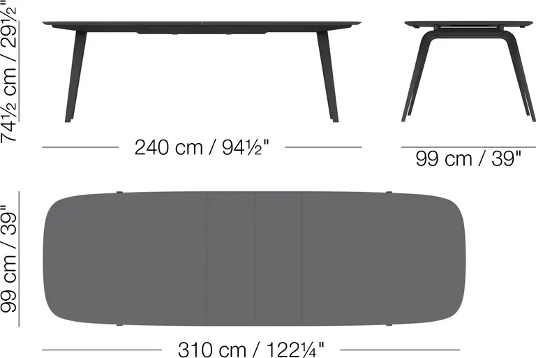 Equipped with a foldable extension leaf, which is discreetly stored under the tabletop, this dining table can accomodate up to four additional seats.