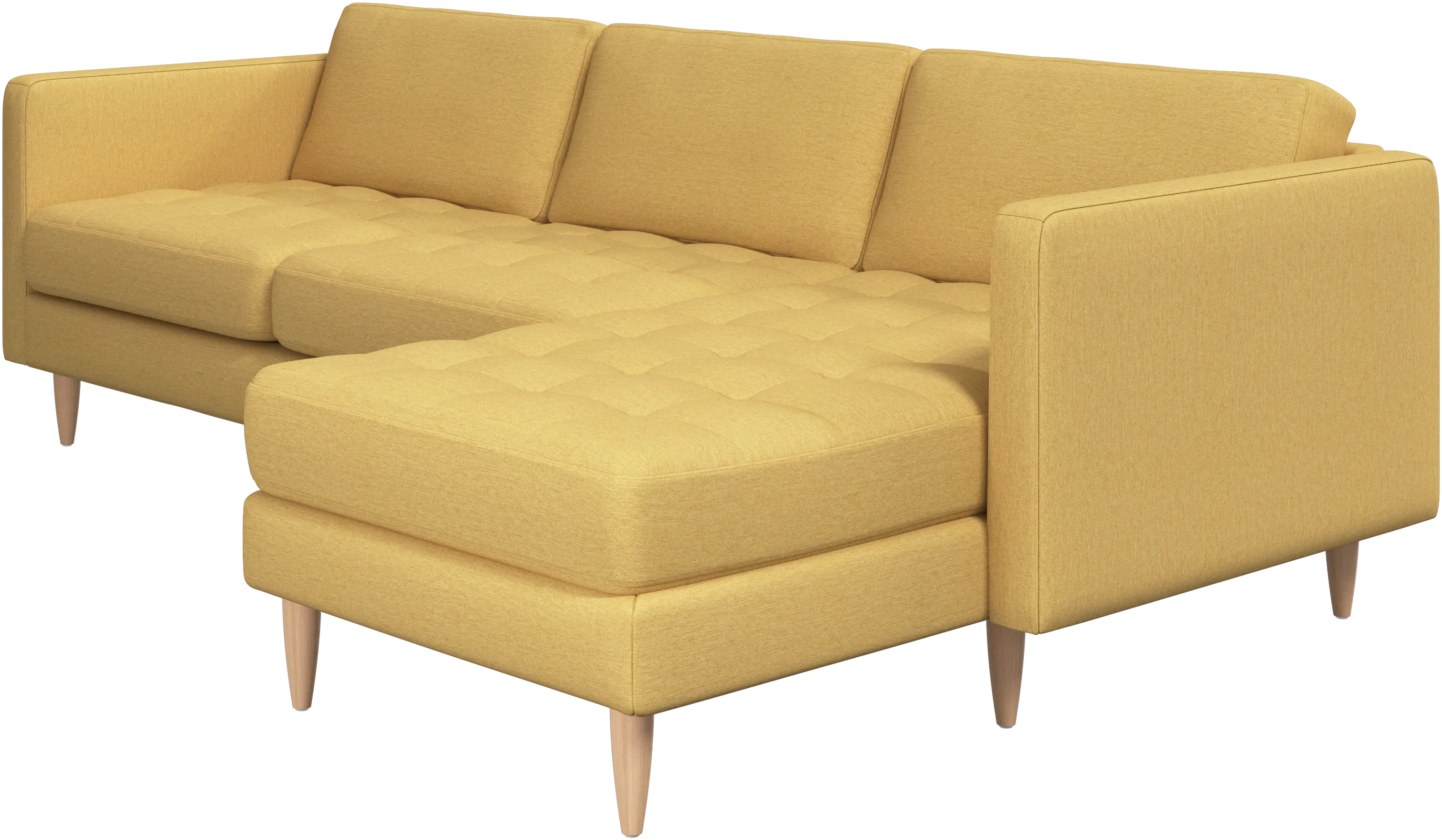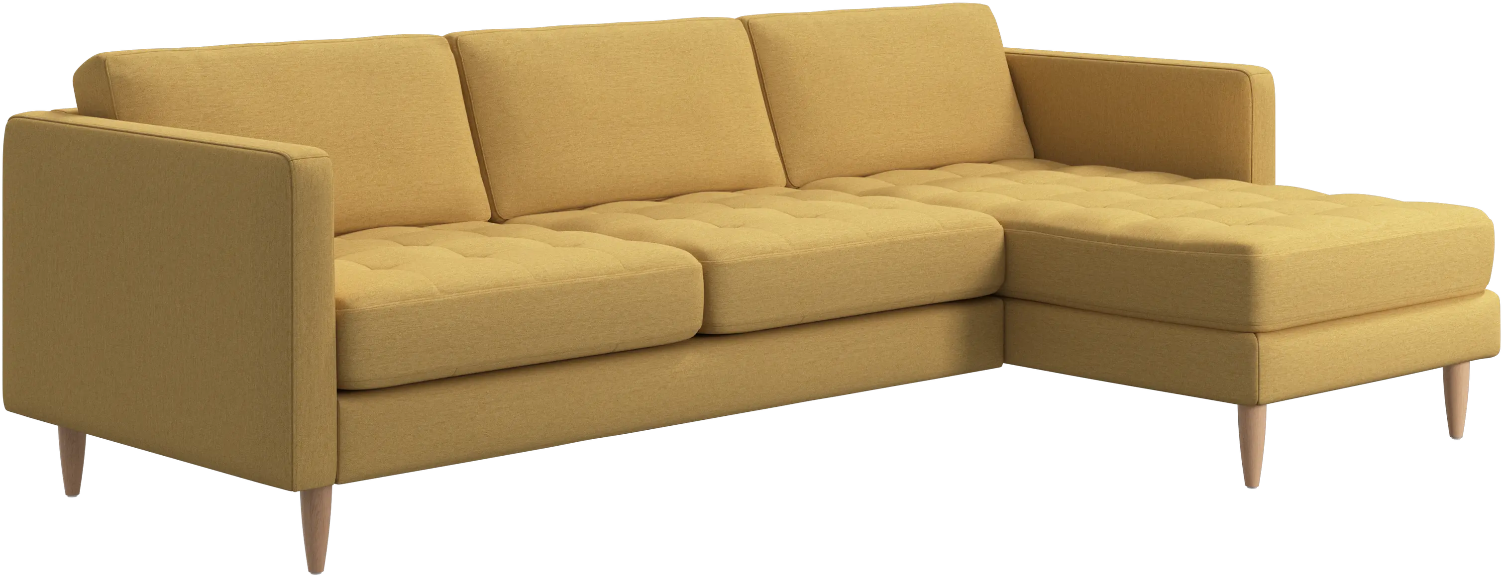 A light look and slim proportions make the Osaka sofa perfect for small homes, while a subtle feminine look and a touch of 60s design ensure that the Osaka sofa still packs a style punch. The beautiful tufted seats add visual softness and bring a classic look to your living room. The classic, straight armrests emphasise the clean lines and Scandinavian look. Put your feet up, stretch out or use it as an extra seat – you won’t be sorry for choosing this comfortable chaise longue sofa.