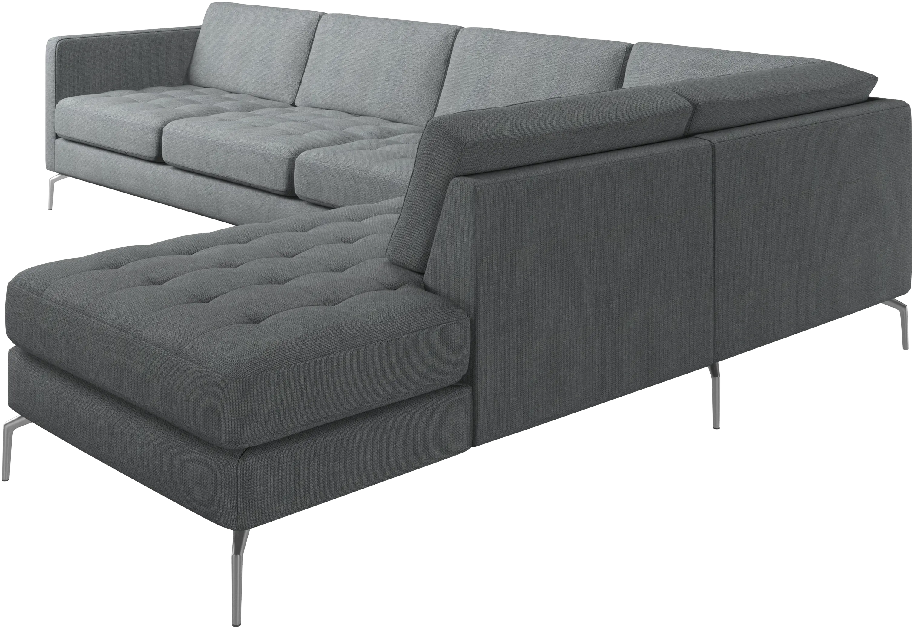 A light look and slim proportions make the Osaka sofa perfect for small homes, while a subtle feminine look and a touch of 60s design ensure that the Osaka sofa still packs a style punch. The beautiful tufted seats add visual softness and bring a classic look to your living room. The classic, straight armrests emphasise the clean lines and Scandinavian look. With plenty of room for the entire family this corner sofa will be the hero of your living room. The open end will create a dynamic, welcoming atmosphere - a true blessing for the integrated areas of open-plan living. Put your feet up, stretch out or use it as an extra seat – you won’t be sorry for choosing this comfortable chaise longue sofa.