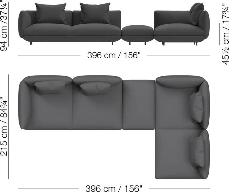 Salamanca boasts generous proportions and soft curves that are accentuated by slim, discreet black tubular legs to create a low, 'floating' appearance.