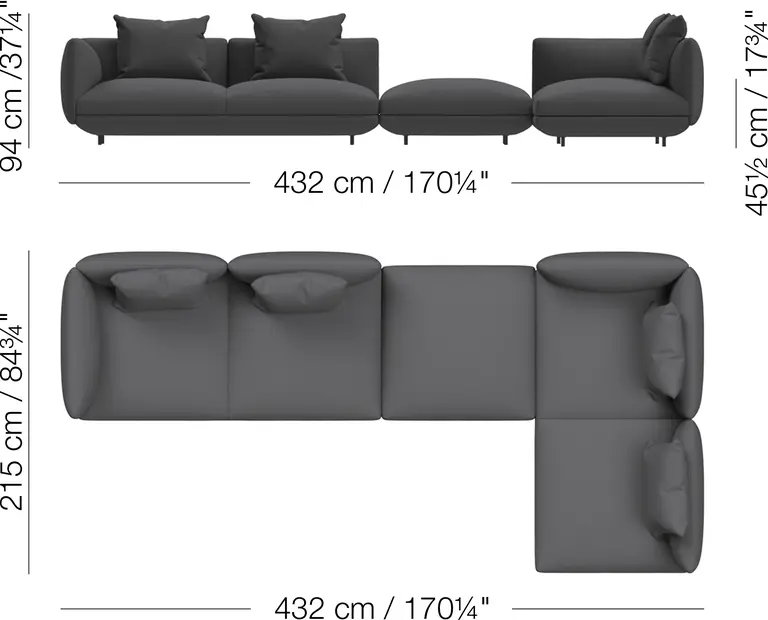 Salamanca boasts generous proportions and soft curves that are accentuated by slim, discreet black tubular legs to create a low, 'floating' appearance.