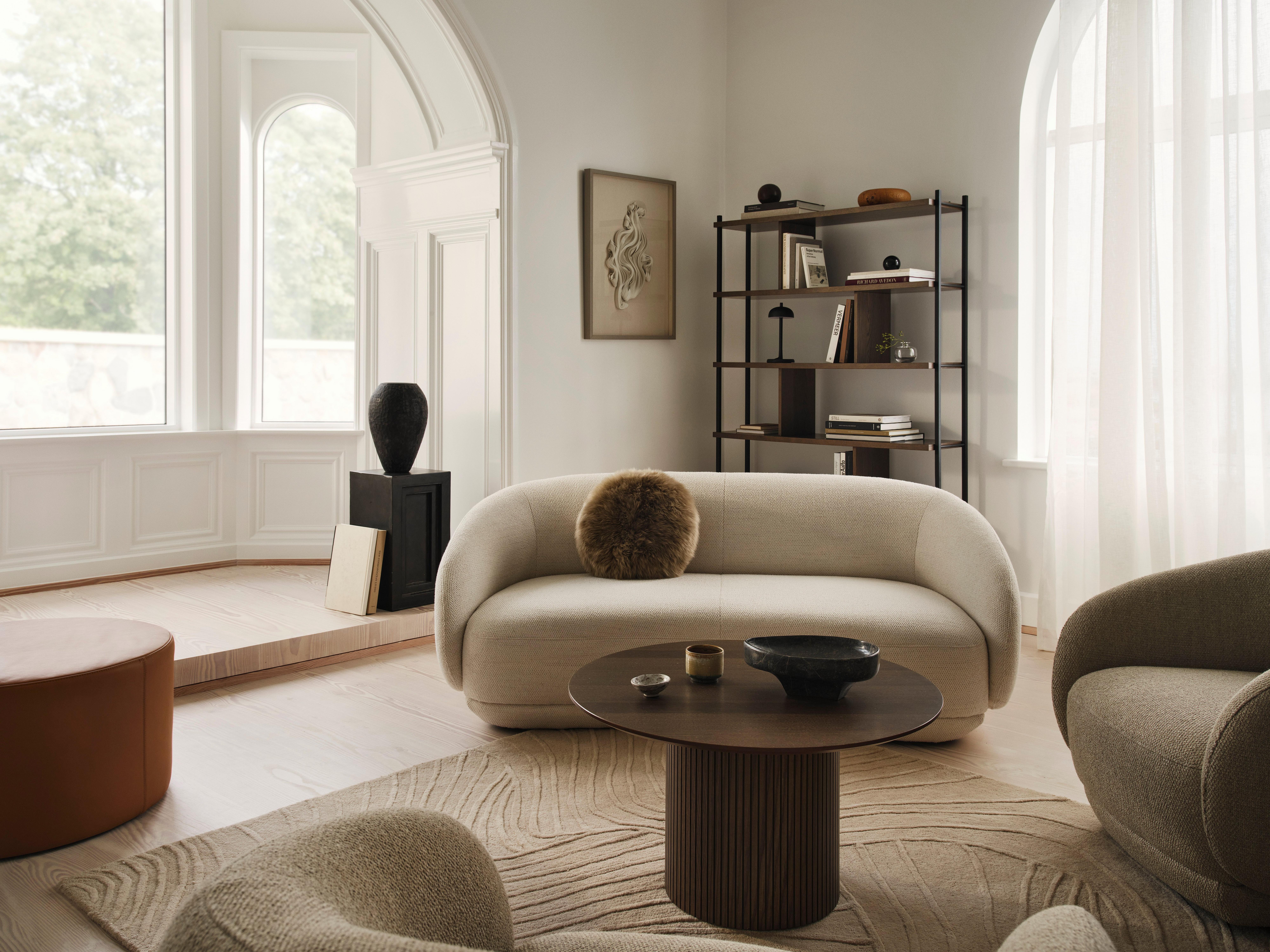 • Carmo sofa placed in a modern Scandinavian inspired living room, with the Charlotte chair and the Sevilla coffee table.