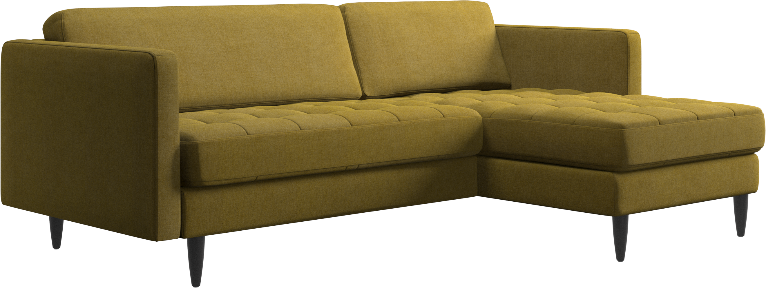 A light look and slim proportions make the Osaka sofa perfect for small homes, while a subtle feminine look and a touch of 60s design ensure that the Osaka sofa still packs a style punch. The beautiful tufted seats add visual softness and bring a classic look to your living room. The classic, straight armrests emphasise the clean lines and Scandinavian look. Put your feet up, stretch out or use it as an extra seat – you won’t be sorry for choosing this comfortable chaise longue sofa.