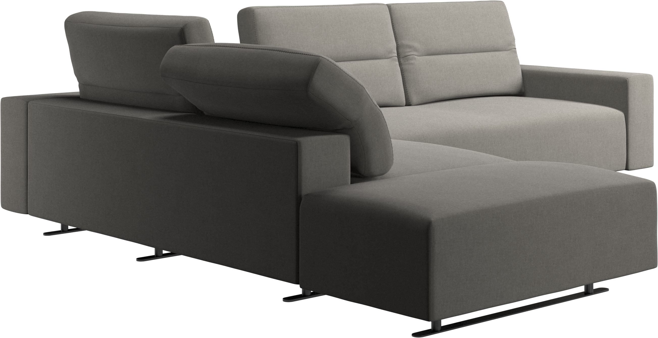The total depth of the seat is 107 cm meaning wide enough to sleep on. To ensure optimal support despite this deep seating area, a lumbar cushion and a scatter cushion are available in coordinated fabrics and leathers.