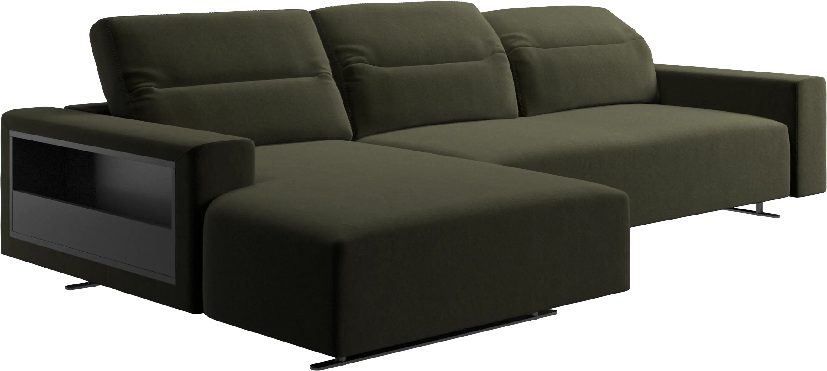 We know. It’s beautiful. But the modern Hampton sofa is much more than just good looks. A low base, a stunning loft look, adjustable backrests for comfort and visual impact – the Hampton sofa is the perfect personal retreat. Put your feet up, stretch out or use it as an extra seat – you won’t be sorry for choosing this comfortable chaise longue sofa. And with clever built-in storage in the armrest, you will always have your living room essentials at hand.