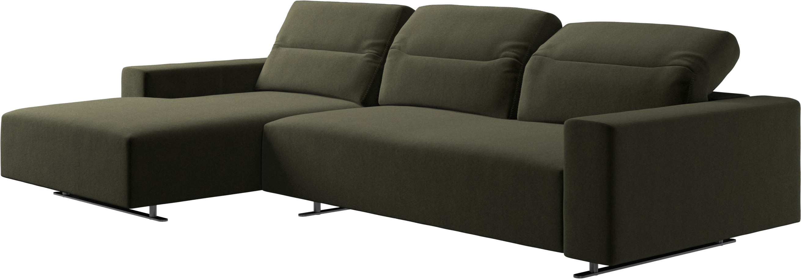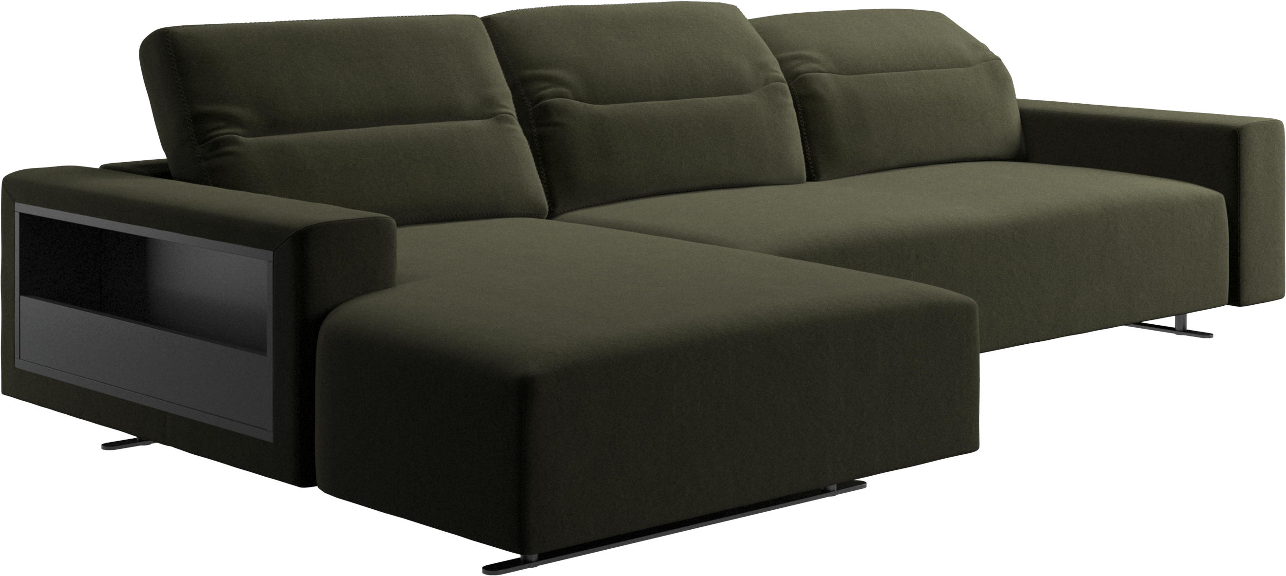 We know. It’s beautiful. But the modern Hampton sofa is much more than just good looks. A low base, a stunning loft look, adjustable backrests for comfort and visual impact – the Hampton sofa is the perfect personal retreat. Put your feet up, stretch out or use it as an extra seat – you won’t be sorry for choosing this comfortable chaise longue sofa. And with clever built-in storage in the armrest, you will always have your living room essentials at hand.