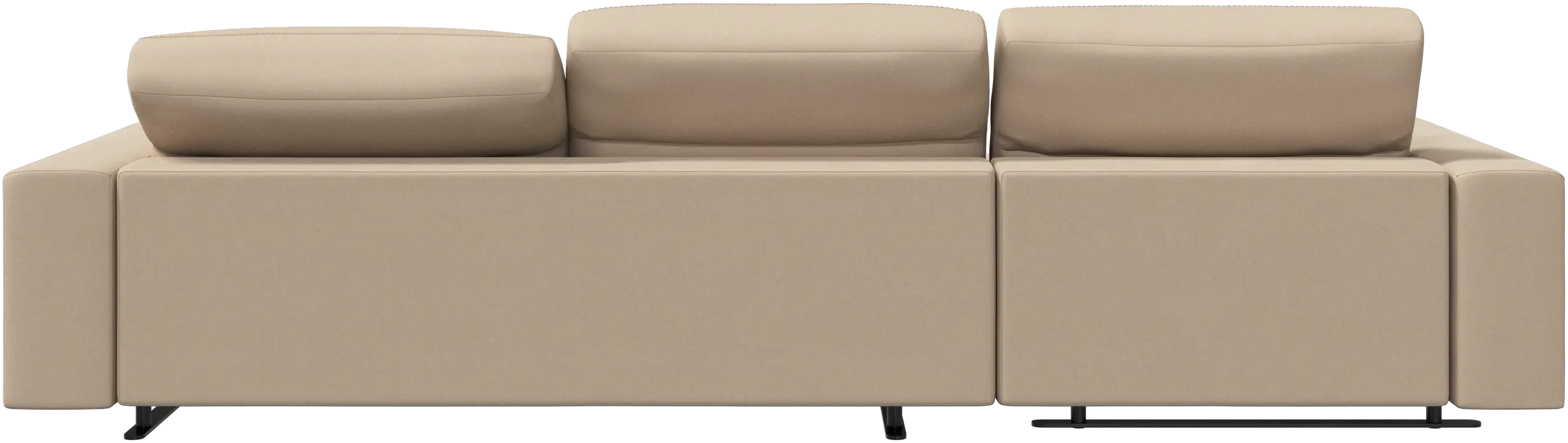 We know. It’s beautiful. But the modern Hampton sofa is much more than just good looks. A low base, a stunning loft look, adjustable backrests for comfort and visual impact – the Hampton sofa is the perfect personal retreat. Put your feet up, stretch out or use it as an extra seat – you won’t be sorry for choosing this comfortable chaise longue sofa. And with clever built-in storage in the armrest, you will always have your living room essentials at hand.