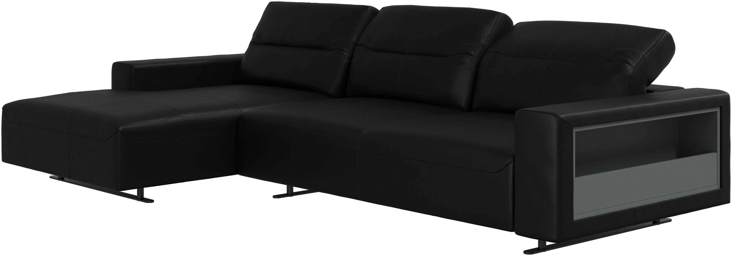 We know. It’s beautiful. But the modern Hampton sofa is much more than just good looks. A low base, a stunning loft look, adjustable backrests for comfort and visual impact – the Hampton sofa is the perfect personal retreat. Put your feet up, stretch out or use it as an extra seat – you won’t be sorry for choosing this comfortable chaise longue sofa. And with clever built-in storage in the armrest, you will always have your living room essentials at hand.
